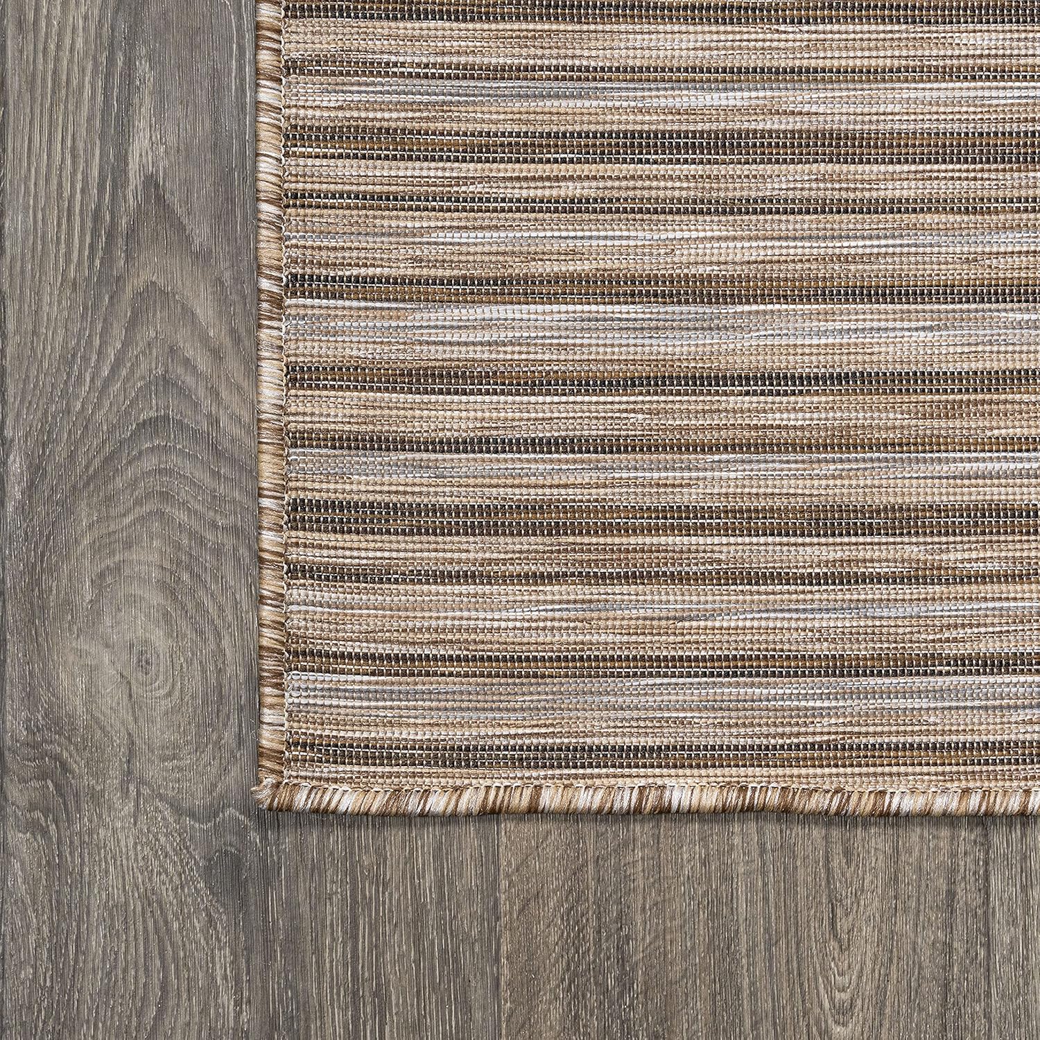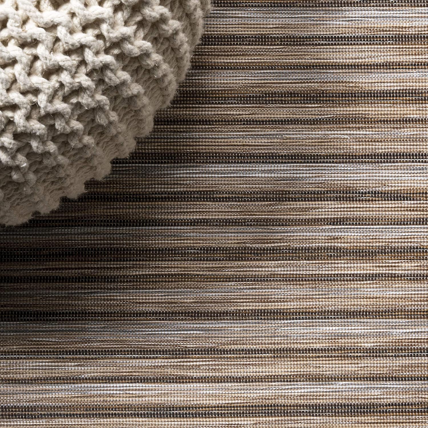 Anchor your mid-century modern, urban contemporary, or farmhouse-inspired space with our flat-weave striped rug. The mingled dark gray stripe design is practical for high-traffic areas with kids and pets. Add pattern to a living room, dining room, entry, office or bedroom with this easy-care synthetic rug.