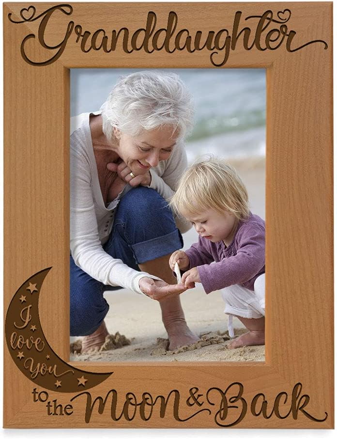 KATE POSH Granddaughter I Love You to the Moon and Back Engraved Wood Picture Frame, Grandma Grandpa Gifts, Christmas, Birthday, Mother's Day, Father's Day