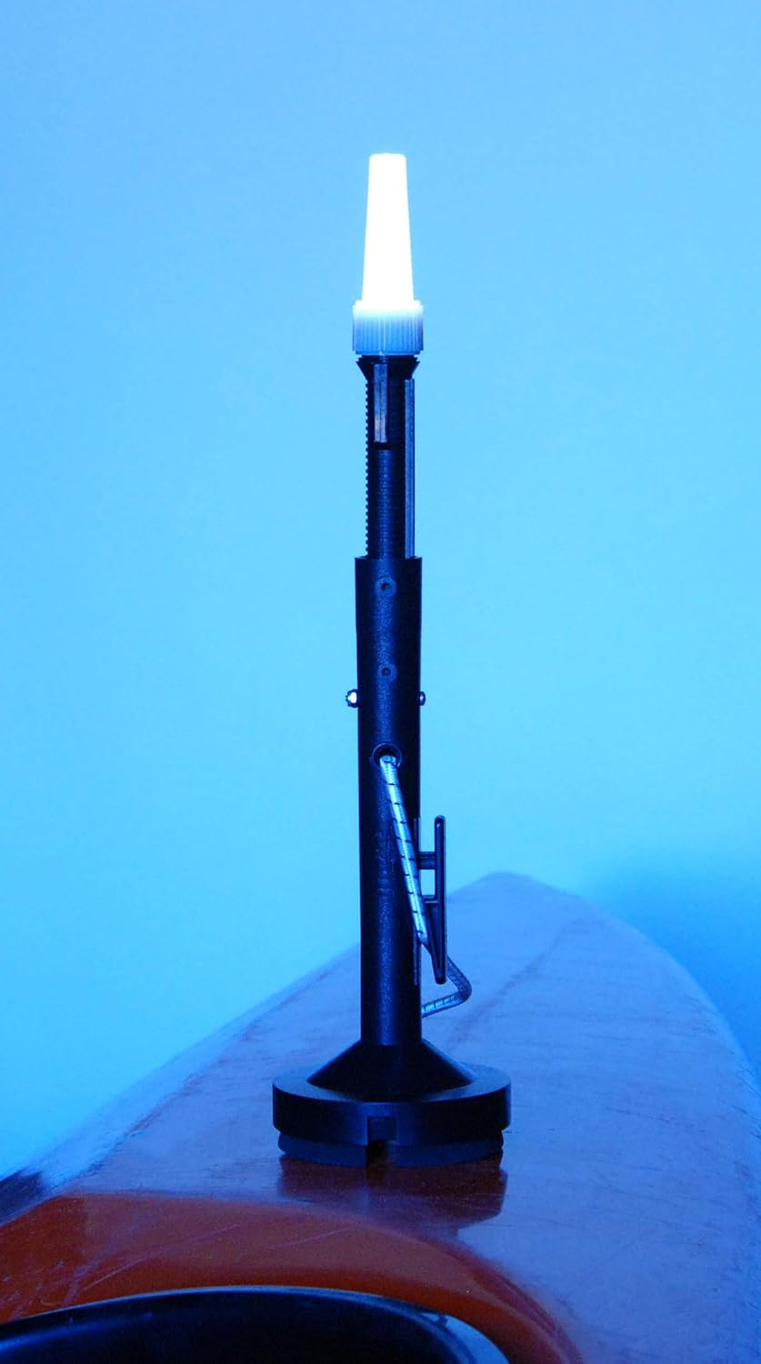 Do your research, take night paddling seriously, and we think you'll agree... there is simply no better engineered or safer light for paddling after dark. The Kayalite is a portable, deep water submersible, high-visibility dual-LED, 360° night navigation light for kayak, sit-on-top (SOT), stand-up paddle board (SUP), canoe, dinghy and inflatable. Unlike kayak lights depending on loss-prone suction cups, magnets or rigid mounts, the Kayalite is virtually loss-proof and indestructable, capable of flexing during a self-rescue, surviving a smack from a paddle or branch, even recovering from a kayak roll in shallow surf. A tension cable holds the mast upright while preventing it from snapping or accidentally detaching. The Kayalite quickly clips onto any existing eyelet or other point of attachment on deck. To secure, you simply pull the tension cord taut with a single hand and cinch it on the Kayalite's built-in jam cleat. In a pinch, the Kayalite can be clipped to your kayak's deck rigging or carry handle, SUP leash plug or D-ring, canoe bench, etc. If your craft does not have a point of attachment to clip the Kayalite onto, search Amazon for the Kayalu Eyelet Kit.SpecificationsMade in USA of high-strength ABS, Lexan, rubber o-rings, marine-grade stainless steel fittings. Buoyant, waterproof (IPX8) and submersible to 1000' below sea level (300m). Lens: New white diffusion model. Provides 100+ hours of use on 3 AA alkaline batteries (included). Rechargeable AA are not recommended due to expansion in heat. Bright white 2-LED module life: 10,000 hrs. Height: 18" (45 cm). Weight: 11 oz (312g). Meets USCG regulations for kayak, canoe, SUP, SOT (Rule 25). U.S. Patents #8,651,440 #8,814,111. With a Kayalite, the #1 choice of pro paddlers worldwide, you'll tackle the night!NoteTo view our kayak and standup paddleboard (SUP) products on Amazon, search ALL DEPARTMENTS for KAYALU. Check out our new Kayalu WaterTorch XT product!