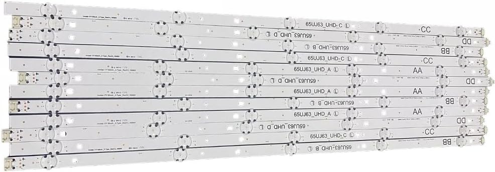 Type:Led Strips Product information Size (Length):1328 mm(A+B) Number of LED beads:10 Per strip(A+B) Every LED Lamp Voltage:3 V And 1.5W Package include:1 set= 12 pcs LED Strip(3*A+3*B+3*C+3*D) Replacement For 65 inch TV Fitment: Replacement For LED Light bar model: Replacement For 65UJ63_UHD_A 65UJ63_UHD_B 65UJ63_UHD_C 65UJ63_UHD_D Replacement For 65UJ63_A 10LED REV00 170720 Replacement For 65UJ63_B 10LED REV00 170720 Replacement For 65UJ63_C 10LED REV00 170720 Replacement For 65UJ63_D 10LED REV00 170720 Replacement For Innotek 17Y 65inch_A-Type_Rev0.0_160809 Replacement For Innotek 17Y 65inch_B-Type_Rev0.0_160809 Replacement For Innotek 17Y 65inch_C-Type_Rev0.0_160809 Replacement For Innotek 17Y 65inch_D-Type_Rev0.0_160809 Replacement For EAV63673007 EAV63994201 EAV63994301 EAV63994401 EAV63994501 EAV64054501 Replacement For AGF78818401 AGF78818405 65UJ634V Replacement For LG 65 inch TV Models:65LJ5500 65LJ550M 65LJ550T 65LJ550V 65LJ550Y 65LJ553T 65LJ554T 65LJ5550 65LJ594V 65LJ595V 65LJ610V 65LJ610Y 65LJ6130 65LJ6140 65LJ614T 65LJ614V 65LJ617T 65LJ619V 65LJ622V 65LJ624V 65LJ6400 65LJ6420 65LJ6800 65LV340C 65LV340H 65LV341H 65LV541H 65LV560H Easy to install, but it is still recommended to be operated by professionals. Every product undergoes quality inspection before leaving the factory. All parts are hand inspected off the line before packaging and once again by our team before shipment. Communication is the best way to solve the problem. If you have any problems after or before purchasing, please contact us in time, before opening return or case.