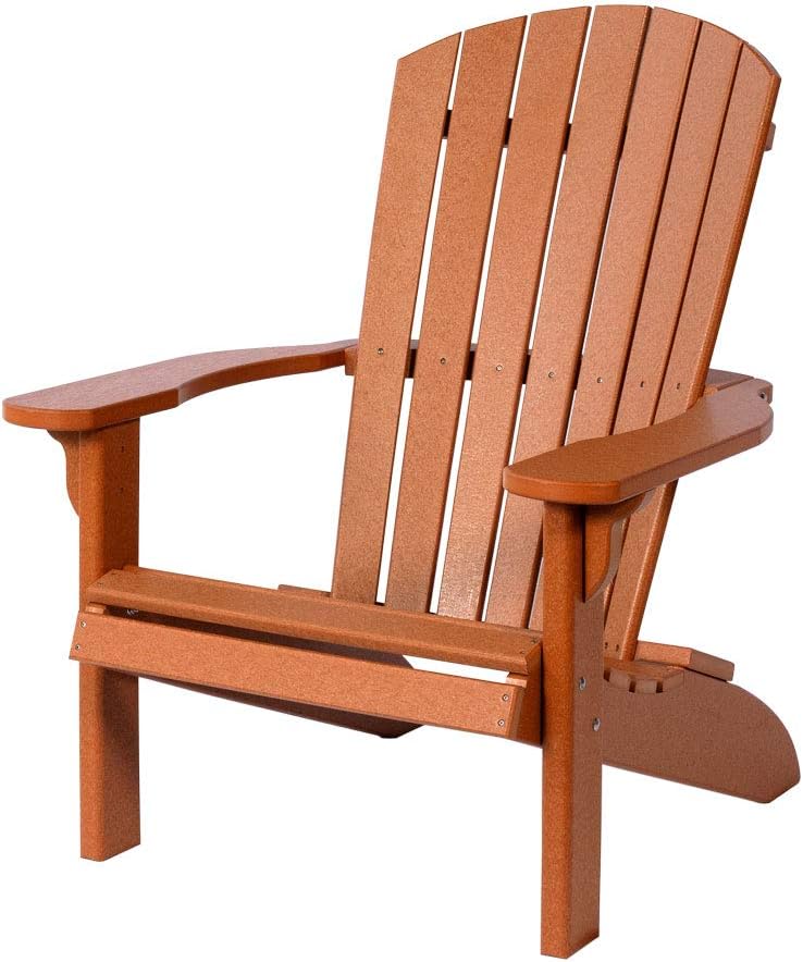 Leisure Lawns Poly Fan-Back Adirondack Chair Take a seat and enjoy the beauty of nature in your favorite outdoor space. Hand-crafted from environmentally friendly poly lumber and crafted with comfort and durability in mind, this Fan-back Adirondack Chair is made to last decades! The classic style has a curved back and gently sloping seat which is designed to be extremely comfortable! It's perfect for your deck, patio, or even the beach! Features Eco-Friendly: Produced with plastic lumber made from recycled, high-density polyethylene (HDPE) which would normally be disposed into our landfills. Maintenance-Free: Will not rot, rust or fall apart from wear. It does not require painting and is built to endure harsh weather. Thicker Leg Construction: The legs of our poly furniture are 1 1/2" thick by 3 1/2" wide, giving our furniture additional strength and stability. Stainless Steel Fasteners: We use high-quality stainless steel fasteners on all of our poly furniture which are proven to be more resistant to corrosion. Quality Assurance: All of our furniture is made using only the highest quality materials, allowing us to stand behind our products knowing it will serve you well in the years to come. Proudly Made in America: Amish crafted with quality and care in New Holland, Pennsylvania. Specifications: Dimensions: 32"D x 32"W x 41"H Seat Size: 20"D x 23"W x 15"H Weight: 48 lbs Material: Poly Lumber and Stainless Steel Minor Assembly Required