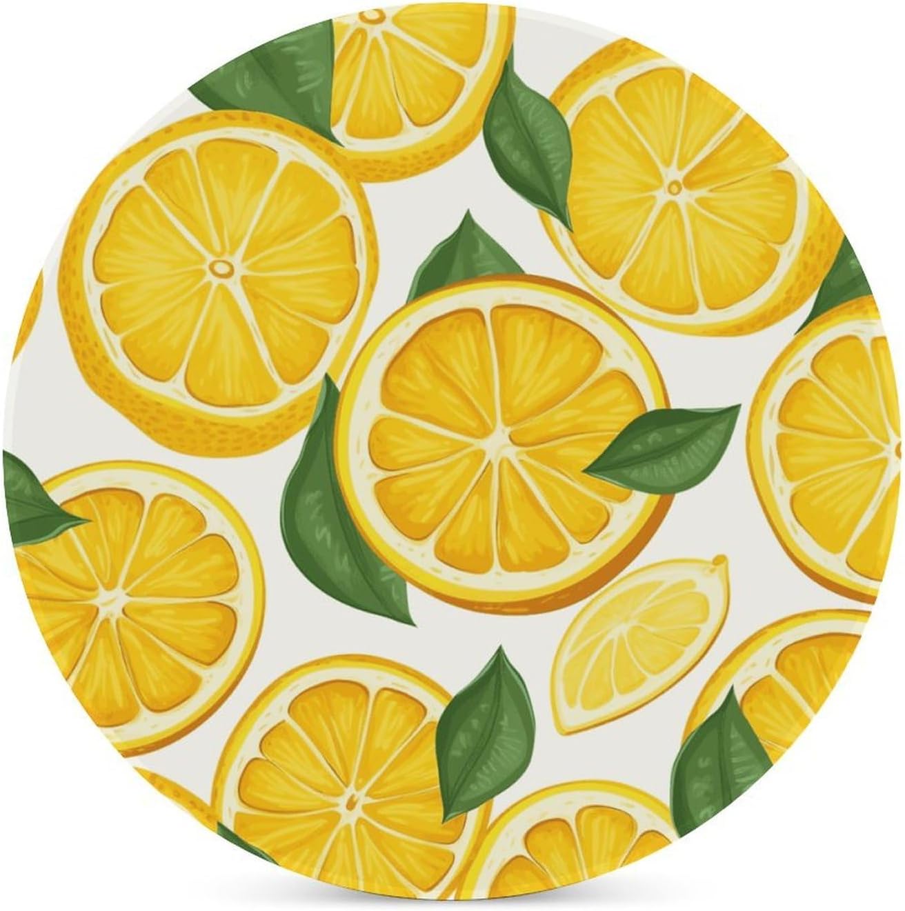 Lemon Fruit Pattern Coasters for Drinks Absorbing Round Ceramic Stone Coaster with Cork Base Coffee Cup Beverage Table Cup Mat Modern Style Bar Coaster Set for Home Decor
