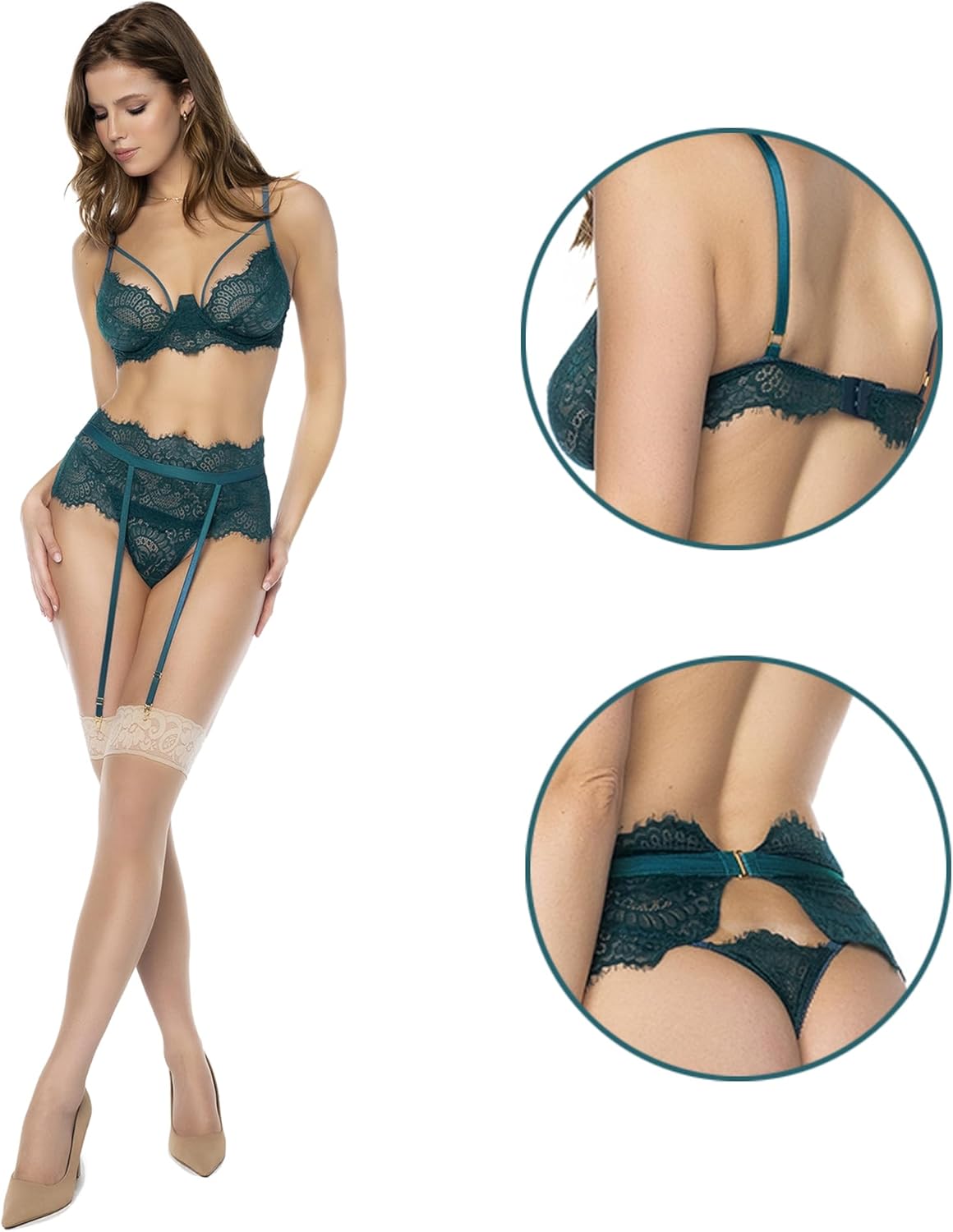 Indulge in the allure of precious stones and exquisite design with the Mapale 8866 Lingerie Set. This is not just lingerie; it's a complete experience designed to empower. Every detail is crafted from soft, intricate eyelash lace in a rich, jewel-toned Sea Green. The set begins with the underwire bra top, featuring adjustable straps to provide the perfect combination of sensual style and comfortable support. The centerpiece is the stunning garter belt, which flatters your waist and invites you to complete the look with your favorite stockings. Paired with the matching lace thong, this three-piece set creates a seamless and breathtaking silhouette. It is the ultimate choice for a Valentine's Day surprise, a honeymoon, a special anniversary, or any moment you want to feel your most magnetic. Please Note: Stockings are not included. Care Instructions: To maintain the beauty of your eyelash lace, please Hand Wash Only. Do not Bleach. Do not Iron.