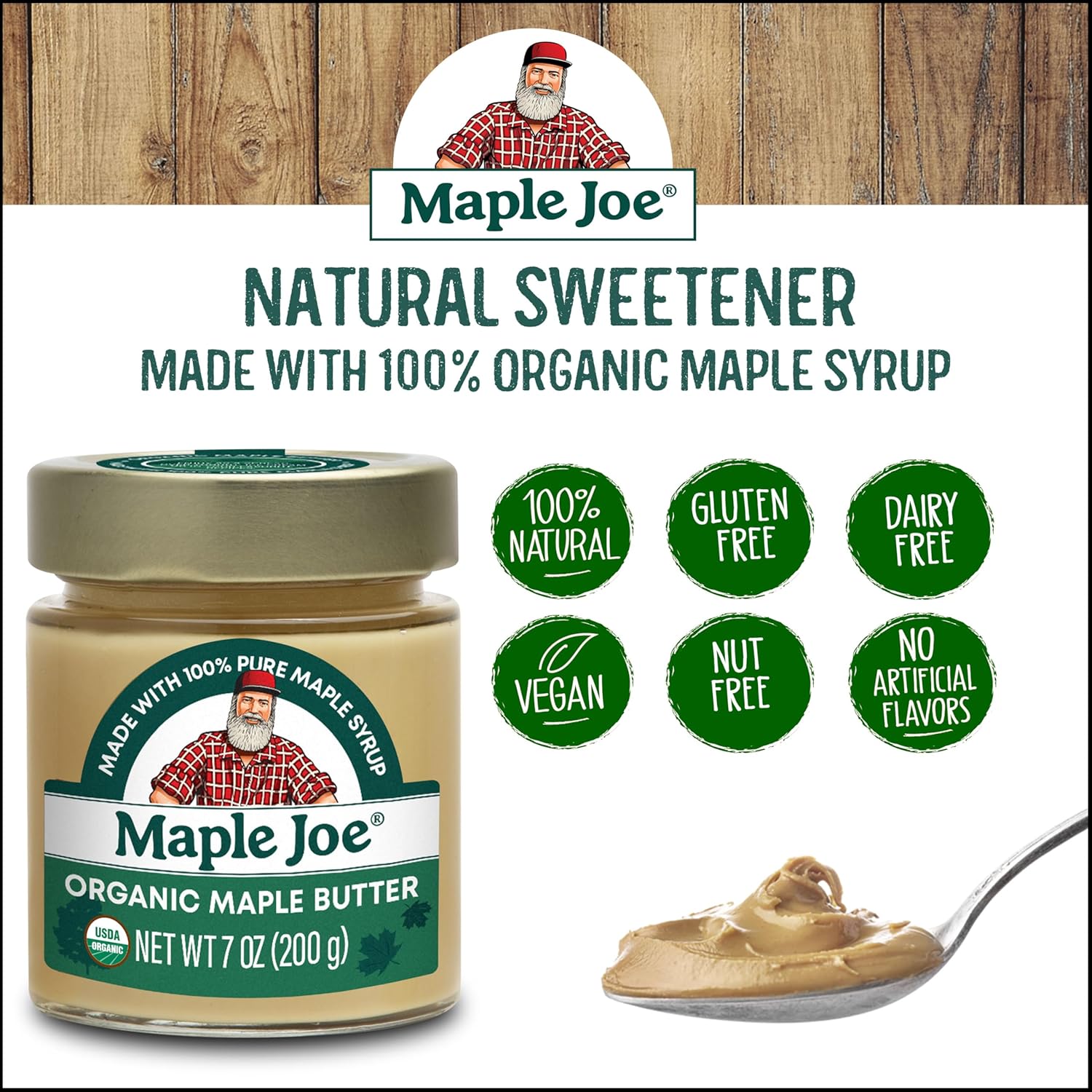 Maple Joe ORGANIC Maple Butter Spread, Pure Maple Cream Spread Made with 100% Natural Grade A Maple Syrup Butter. Maple Sugar Candy Smooth & Creamy, Maple Candy, Vegan, Zero Fat, Non-GMO, No Dairy, Gluten Free and Kosher Certified. 7oz / 200g. (3 pack)