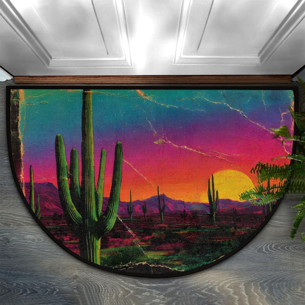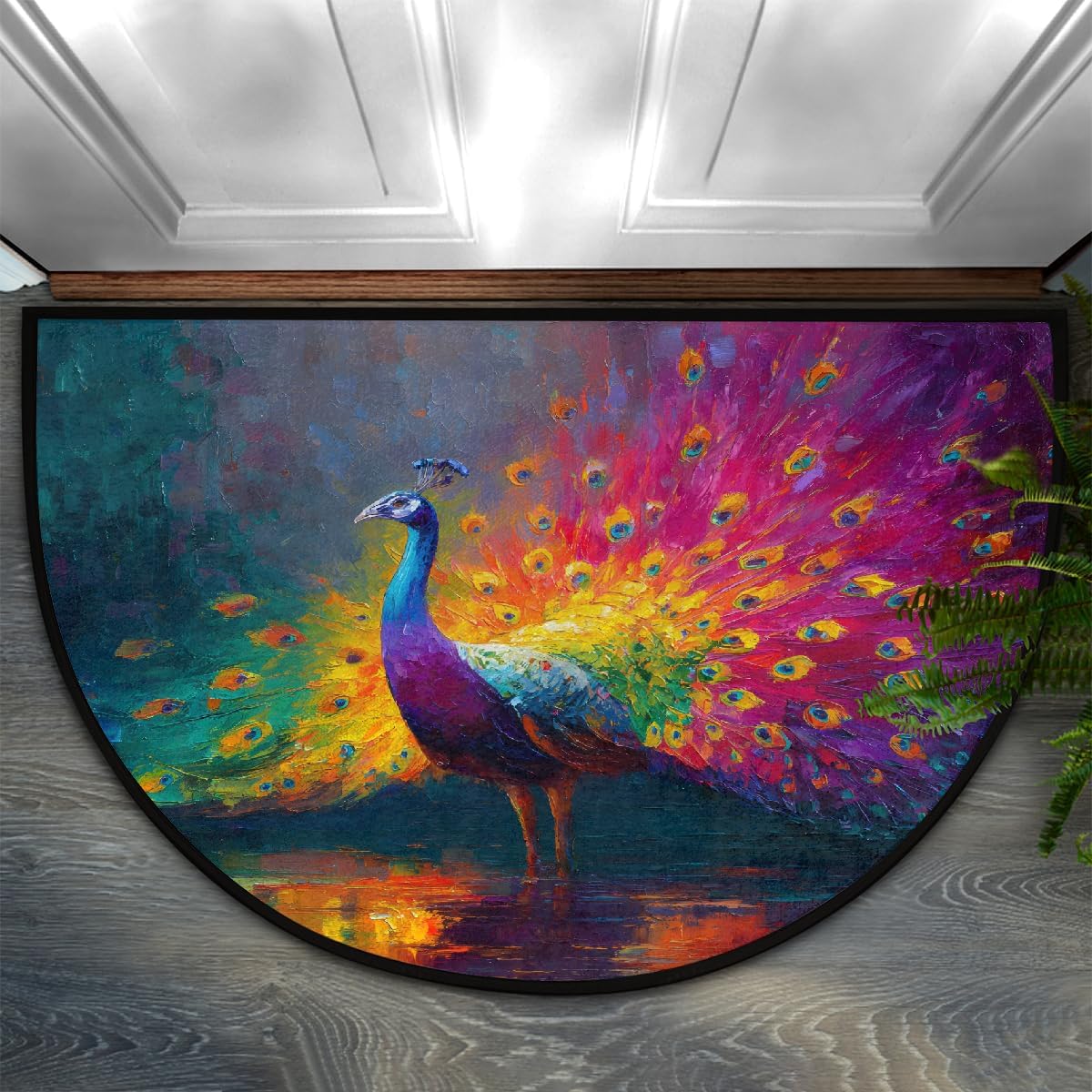 Rainbow Tree Beautiful Half Round Door Mat Indoor Entrance Washable Half Circle Area Rugs Non Slip Half Moon Rug Semi Circle Bathroom Rugs Floor Carpet for Kithen Bedroom Fireplace DecorPRODUCT SPECIFICATIONSSize: 36x24in / 91.4x61cmMaterial: Front side --100% microfiber polyesterBackside--non-skid dot plasticShape: Half Round/Half CirclePackage:1 x Half Round Area RugStyle:Half Area Rug/ Half Round Rug /Half Circle Rug/Half Round MatsPRODUCT FEATURES:1:Keep Floor Clean & Dry, It absorbs water quickly and dries quickly, protecting the floor from moisture, dirt and scratches.2:Non-Skid Backing, Comes with build in anti-slip doormat pad mat with non-skid dot plastic back for maximum grip to prevent you to slip.3:Easy to Clean: The door mats are easy to clean, you can just use vacuum to clean it on daily. If it has been used for a long time, customer can use wash machine to clean the mats.4:High quality durable materials will not break down or compress over time. It is lightweight and could be continually using for long time.5:Perfect decoration A simple way to make the bathroom, kitchen, living room, bedroom, hallway or room bright, colorful and warm.6:Multi-Purpose Usage, Our round carpet is an ideal choice for home decoration, suitable for bathroom, kitchen, bedroom, living room, study room, play room, kid's room, baby room, office, home decor etc.7:Perfect Gift, It can be great gift choice for Mother's Day, Father's Day, Halloween, Christmas, Thanksgiving, Birthday, New Year, Home Decor and more.