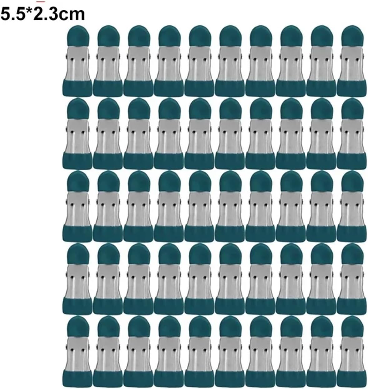 Material: Stainless steelColors: Light green, peacock green, light blue, pink, grayDimensions: 5.5 × 2.3 cmUses: Hanging clothes, bedding, pants, socks, etc.Quantity: 60 piecesNotice:1. Due to the difference between different monitors, the picture may not reflect the actual color of the item. Picture just as a reference.the actual delivered goods shall prevail2. Please allow 0-1inch deviation exists due to the different measuring way