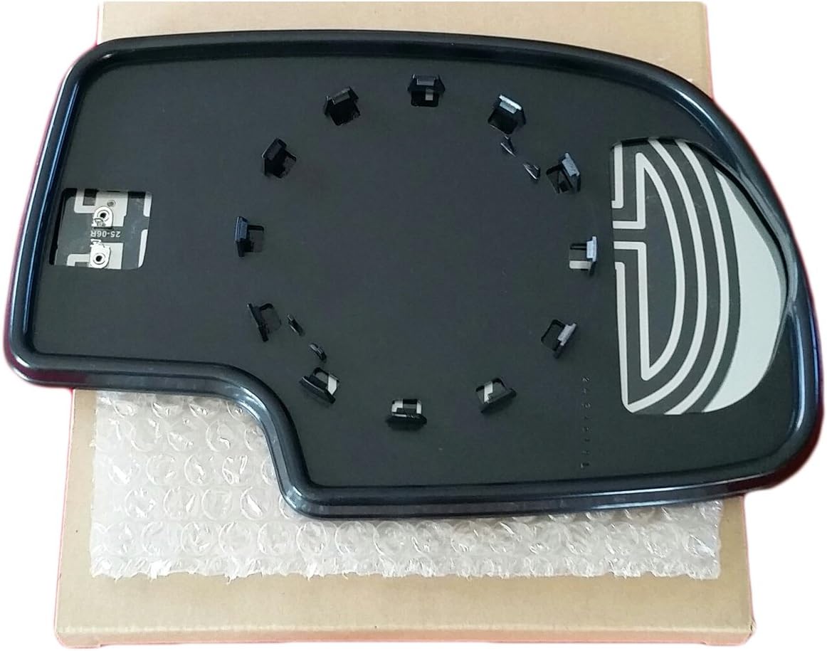 Aftermarket Replacement Mirror Glass with Backing Plate Driver Left Side LH Power, With Heated Flat Glass Without Turn Signal Light Models with 4-3/8" Glass mount bracket Built to strict quality control standards Easy Installation. Fits OEM Part Numbers: 88986362 , 88986364 Fits Partslink Number: GM1324108 Fits Model and Year: 2007 2006 2005 2004 2003 2002 2001 2000 1999 07 06 05 04 03 02 01 00 99 SILVERADO 1500 / 2500 HD / 3500 2007 2006 2005 2004 2003 2002 2001 2000 1999 07 06 05 04 03 02 01 00 99 SIERRA 1500 / 2500 HD / 3500 2006 2005 2004 2003 2002 06 05 04 03 02 ESCALADE EXT / ESCALADE ESV 2006 2005 2004 2003 2002 06 05 04 03 02 AVALANCHE 1500 / 2500 2006 2005 2004 2003 2002 2001 2000 06 05 04 03 02 01 00 SUBURBAN 1500 / 2500 2006 2005 2004 2003 2002 2001 2000 06 05 04 03 02 01 00 TAHOE 2006 2005 2004 2003 2002 2001 2000 06 05 04 03 02 01 00 YUKON / YUKON DENALI / YUKON XL 1500 / 2500