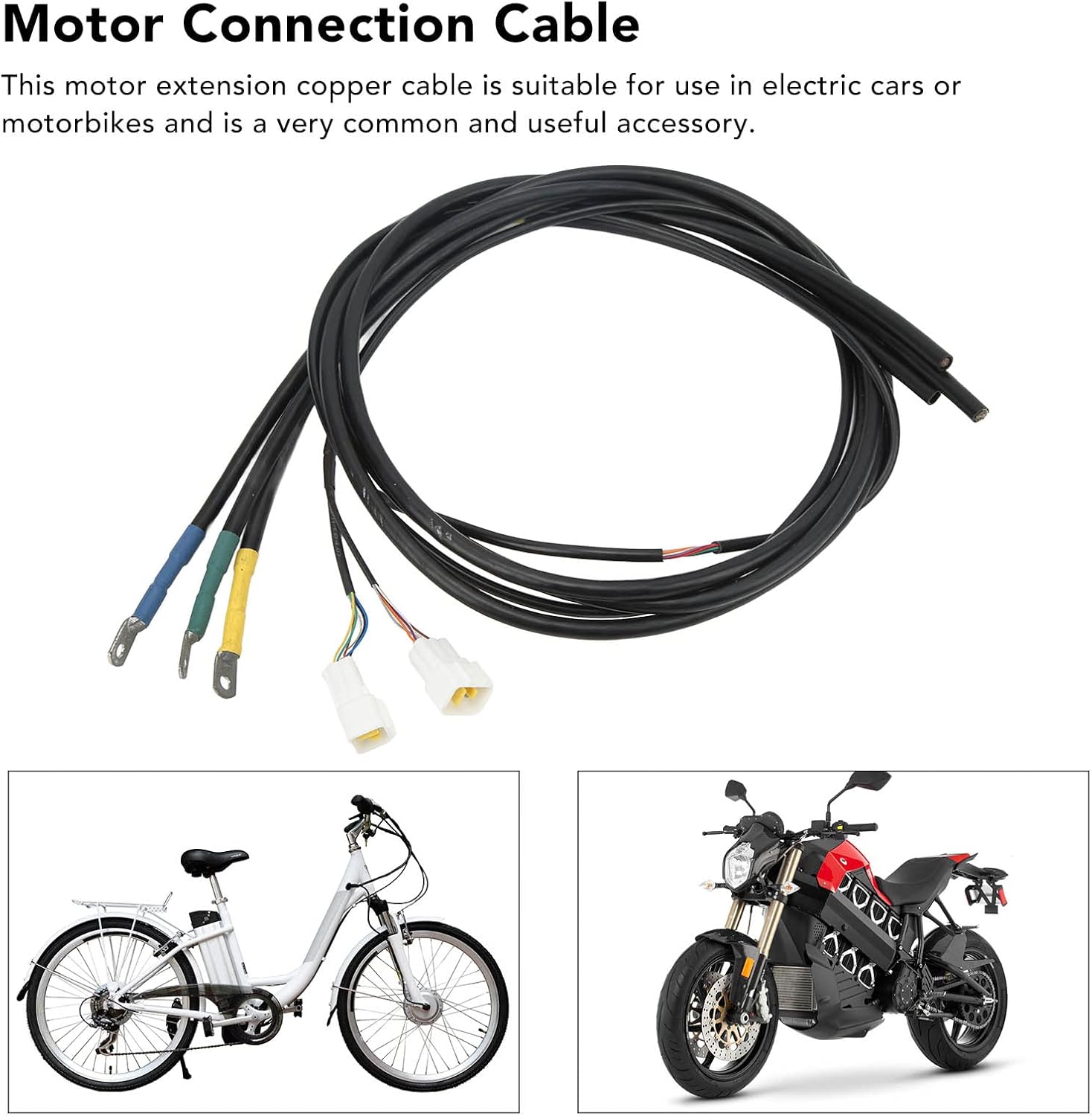 Item Type: Motor Extension CableMaterial: CopperProduct Specification: 16mm²Product Length: Approx. 1.35m / 4.4ftApplicable Motor Type: UniversalPackage List:4 x Motor Extension Cable