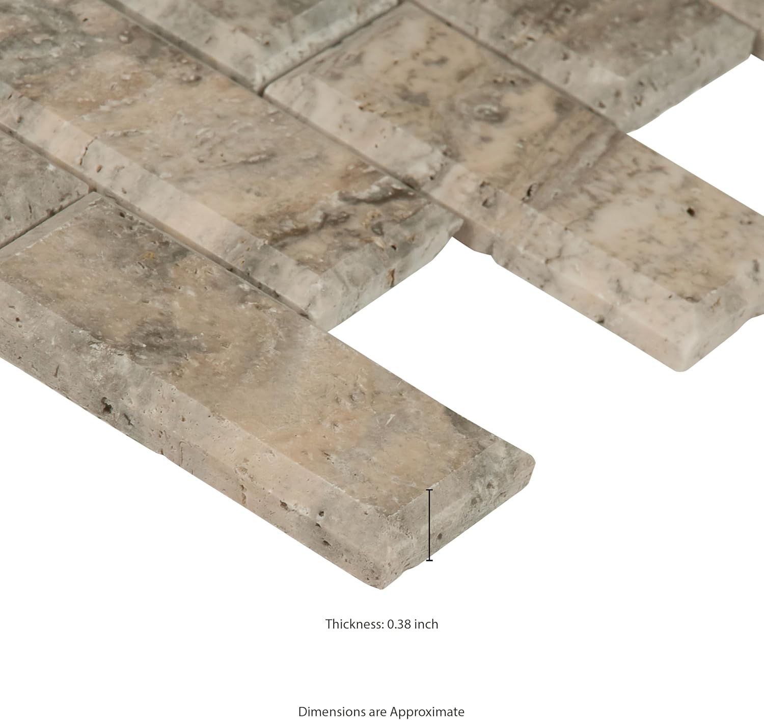 Add a splash of sophistication to your decor with Silver Honed Travertine Mesh-Mounted Mosaic Wall Tile from MSI. It features 2 in. x 4 in. subway-style travertine bricks in trendy shades of silver and gray, infusing your indoor or outdoor space with a sharp look and contemporary flair. The low-sheen, bevel-edged genuine stone strips are perfectly arranged on a 12 in. x 12 in. mesh-backed mosaic, which seamlessly interlocks with other tiles to create a uniform appearance. Suitable for residential and commercial use, this versatile tile has infinite applications to complement a variety of installs. Note: Inspect all tiles before installation. Natural stone products inherently lack uniformity and are subject to variation in color, shade, finish, etc. It is recommended to blend tiles from different boxes when installing. Natural stones may be characterized by dry seams and pits that are often filled. The filling can work its way out and it may be necessary to refill these voids as part of a normal maintenance procedure. All natural stone products should be sealed with a penetrating sealer.