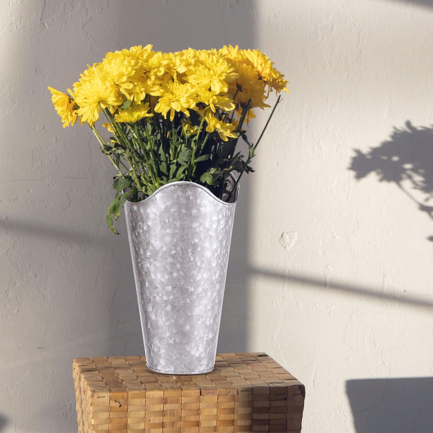 ABOUT USMUKCHAP is specializing in hardware and other products from your daily necessities to home improvement needs. We are selective of the material source and have strict control over the manufacturing quality. We focus on providing the best quality products with satisfactory service. Our Product Featuring:∗Galvanized wall decor vase is sure to make the perfect gorgeous rustic decoration. Use it to decorate your room, living room, yard, garden, balcony, porch, etc. ∗Made of high quality tinplate, rustic wall hanging planter is lightweight and can be easily carried. Comes with all necessary hardware. Just hang it on the wall directly. ∗The tin wall planters for indoor plants are perfect for holding faux flowers, fake lavender, eucalyptus plants, cotton stems and other decorative pieces. ∗Galvanized metal wall plant containers are not fully sealed. Therefore they can be used for planting, but outdoor planting is recommended. Otherwise leaking water will stain the floor. Specifications:Material: tinplate Size: top diameter: 6 inches bottom diameter: 3.5 inches height: 12 inches Color: silver Package Includes:4 x galvanized metal wall planter