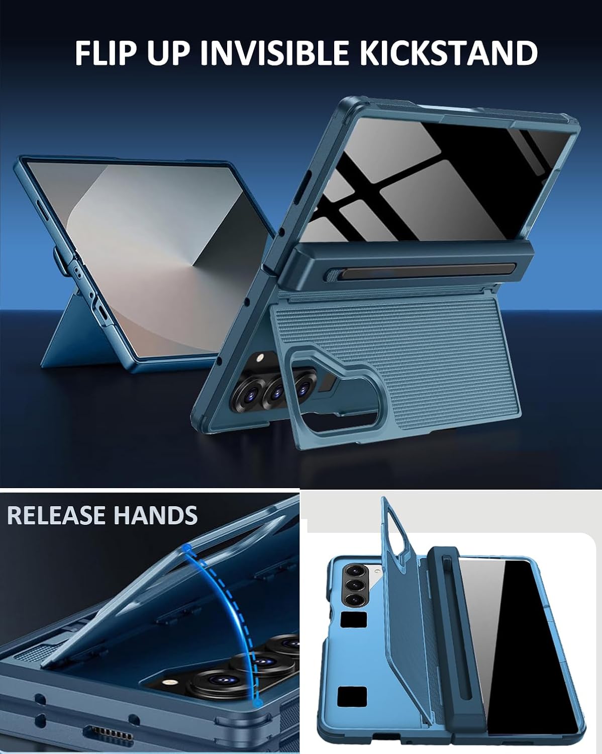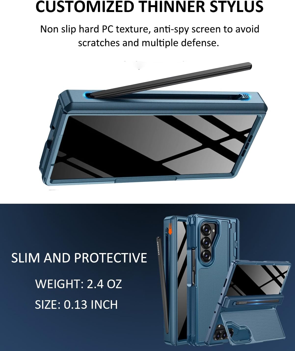 | Additional Features | Stylus Pen and S Pen Holder, Hinge Cover, Hidden Kickstand, Built-in Anti Peep Privacy Screen Protector, Shockproof, Anti Slip Textured, Anti-Scratch, Anti-Fingerprint , Support Wireless Charging |