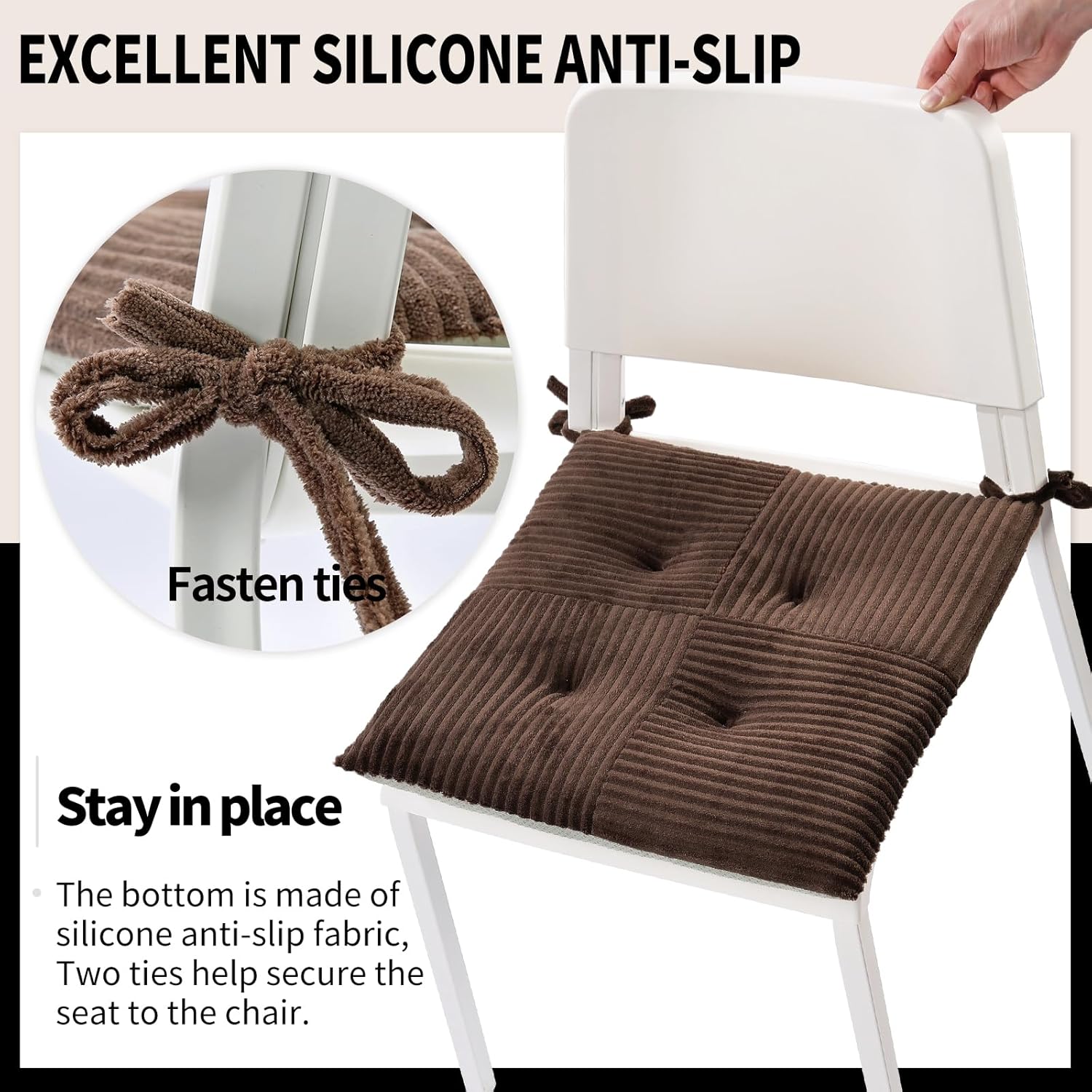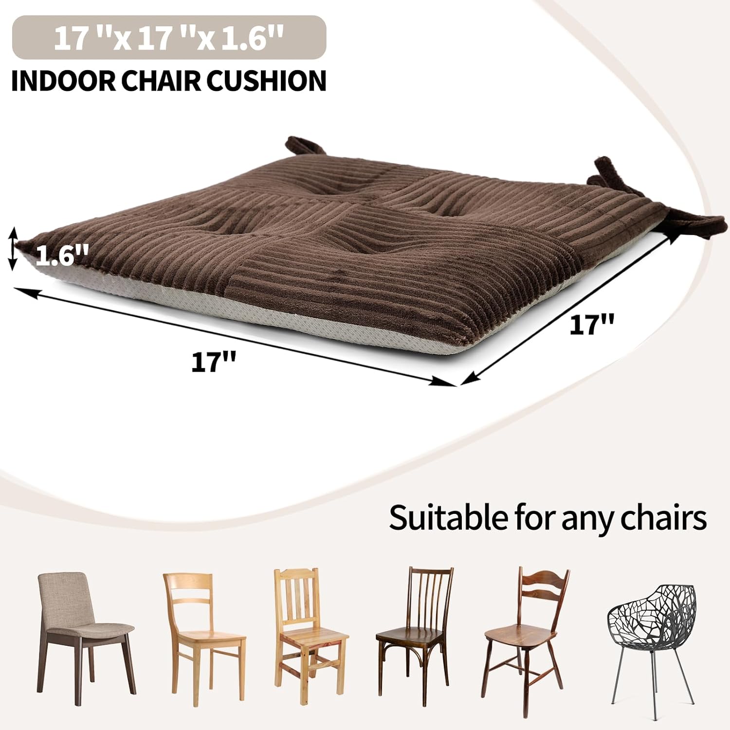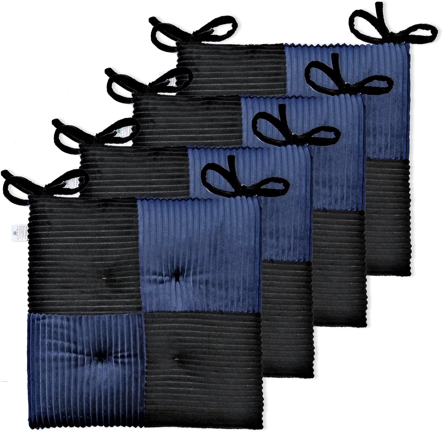 Zalvox Office Stacking Chair cushions 4 Pack, Corduroy High Density Foam Kitchen Seat Cushions with Ties, Square 17" x 17" Indoor Non-Slip Dining Chair Pads, Black+ White,4pcs