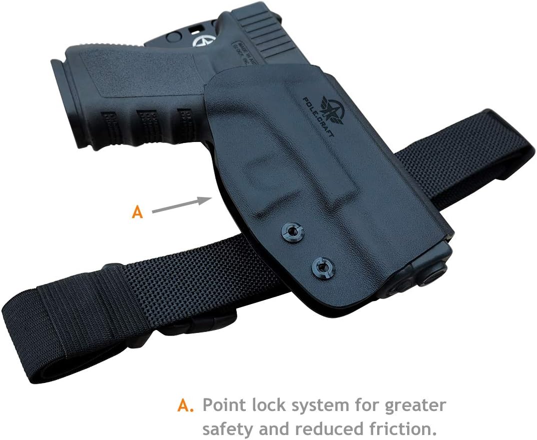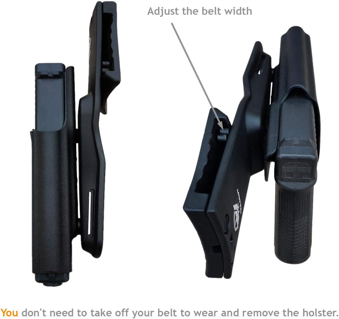 KYDEX holsters for tactical equipment are a wise choiceThe KYDEX Holster for Glock is hand-crafted from a sturdy 0.08" KYDEX alloy plastic plate. This OWB holster for Glock is very thin and light, less than 100g. It is waterproof, sweat-resistant, and has high strength, high toughness, impact resistance, wear resistance and Anti-aging properties. It can be used under a variety of conditions. So you can always rely on it to save your life.High quality and excellent performanceHigh matching, no sloshing, no jitter, no wear. The entrance is widened, easy to insert and pull out, avoiding scratching the gun body and perfectly protecting your gun.PoLe.Craft Kydex holster has a Posi-Click Audible Retention Lock system, and the pistol has a crisp "click" sound when it is inserted, so you know that your gun is firmly seated. Adjust the screw to achieve the tightness adjustment, to achieve the best extraction strength, and strive for the fastest self-storage time.Disassembly-free belt hanging plate, convenient, comfortable, stableThe holster can be worn and removed without disassembling the belt, Convenient and easy to use. Belt clip accurately matches the 1.5 "/1.75" / 2 "belt. It has a non-slip groove inside and no extra space. It can effectively prevent the holster from following the upward movement when pulling the gun, Position to further increase stability. Holster's Height and Angle can be adjusted as needed to obtain the best use habits. The back of the belt clip is curved to fit the waist for optimal comfort.Lifetime WarrantyWe offer a lifetime warranty to ensure any defects in the manufacturer. If our holster for Glock is not performing as promised under normal use, please return it to the replacement or refund the purchase price.Put The Holster at your fingertips and let it protect you wherever you are. Add PoLe.Craft Holster for Glock to your cart now.