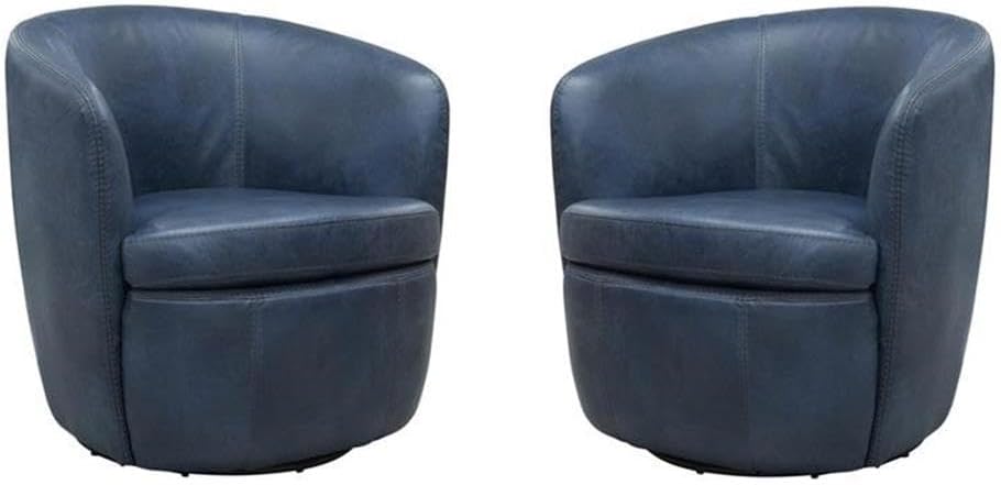 Included Items:- Barolo - Steamboat Ice All Italian Leather Swivel Club Chair x 2 (32"H x 32.5"W x 29"D)For quicker processing, your order could be split into separate packages.Barolo - Steamboat Ice All Italian Leather Swivel Club ChairOur timelessly chic Barolo 100% Italian leather swivel chairs feature a classic yet versatile silhouette that fits effortlessly into almost any room. This low-profile barrel seat is wrapped in glove soft leather, offering 360-degree swivel action to allows for quick pivots in any direction. Bold decorative stitching elevates this chair to the next level, securing its place as a tried and true staple piece in your living space.Features:- 100% Italian Glove Soft Genuine Top-Grain Leather All Over, Aniline-Dyed- Aniline dying process penetrates the leather and will lighten, soften, and develop a rich patina- 360-degree rotating solid metal swivel base - great for versatile positioning- Contoured back and sloped arm for ultimate comfort- High-quality leather is sanded and buffed to remove any imperfections- Sinuous spring construction - for exceptional comfort, support, and durability- Foam and fiber-wrapped seat cushion - for long-lasting cushion comfortSpecifications:- Color/Finish: Steamboat Ice- Material: Genuine Leather- Product Dimensions: 31"W x 28"D x 31.5"H- Product Width: 31"- Product Height: 31.5"- Product Weight: 59.5lbs.- Back Dimensions: 19"W x 14.5"H- Seat Dimensions: 20.5"W x 20.5"D x 19.5"H- Weight Capacity: 350lbs.- Commercial/Residential: Residential- Assembly Required: No