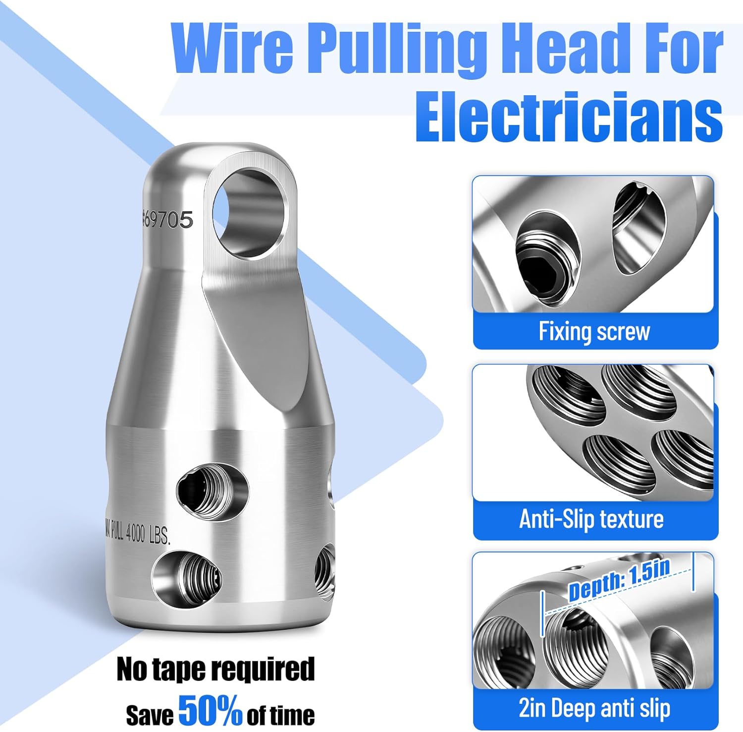 • ใ€4000lb Pulling Strengthใ€‘This 69705 wire pulling Heads constructed from heavy duty stainless steel for superior durability and corrosion resistance. The one-piece design delivers a maximum pulling strength of 4000 lb, easily handling heavy-duty cable pulling jobs with long-lasting reliability.