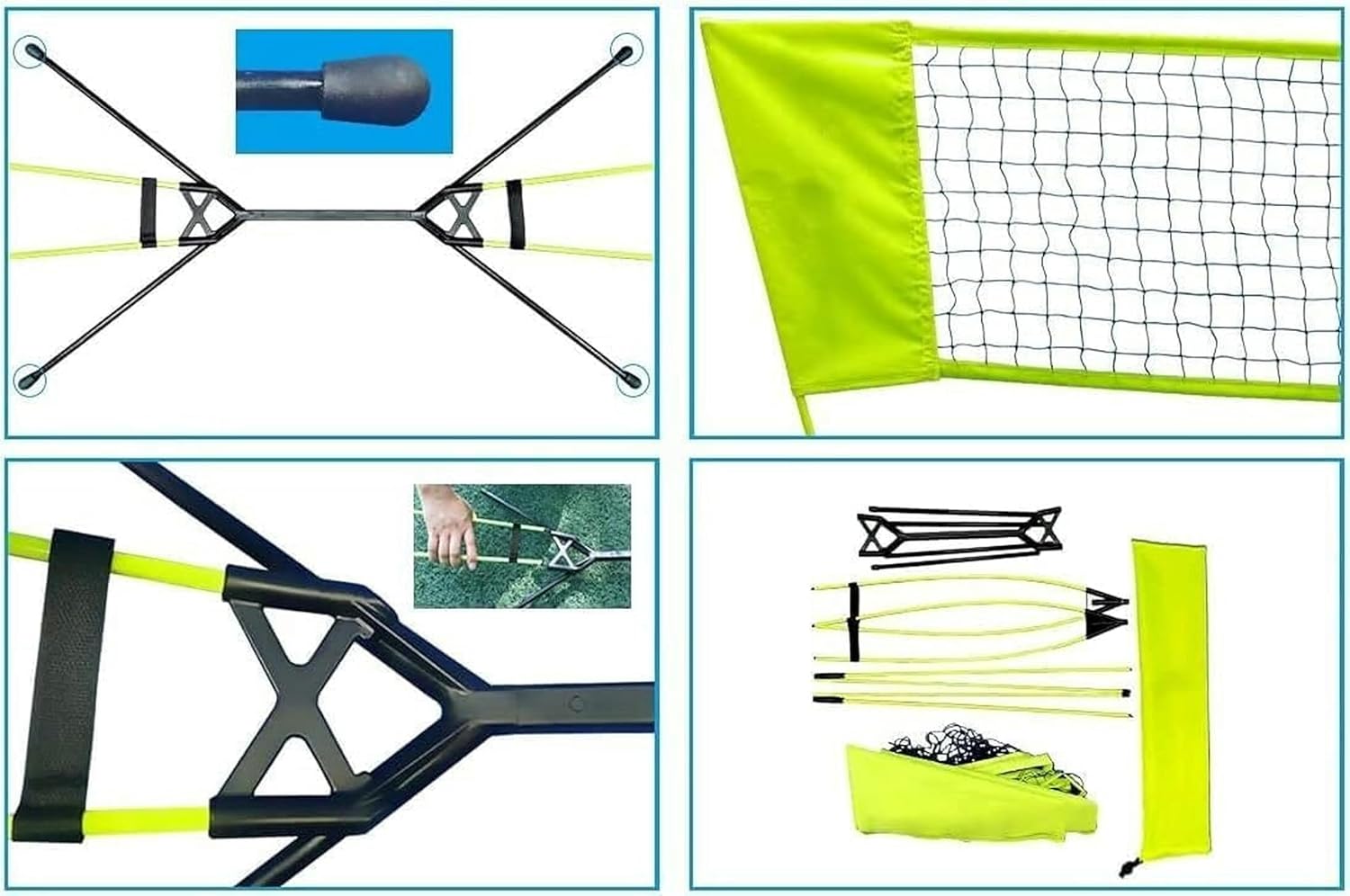 Why Choose Portable Badminton Net for Outdoor Sports?the Independent Design Means You Can Set It up Anywhere. the Bracket Parts Are Connected by Elastic Wires, So You Will Never Lose Them. No Matter Where You Are, You Can B Your Family to Play Together.Whether You Want to Assemble on the Beach, Backyard or Camping, the Portable Badminton Suit Has Everything for You!the Badminton Net is Practical and Easy to Carry, and It Can Also Effectively Promote Communication between Relatives and Friends. You Can Start Exercising Anytime, Anywhere.Very Suitable for Family Sports, Gymnasiums, Exercise Classes, Camping, Indoor or Outdoor Use.Specification:Name: Portable Badminton Net Frame SetMaterial: Glass Fiber Mesh, Polyester Fiber, PuSize: 3 * 1.5M/18.*61InPacking List:1 * Badminton Net Set1 * Storage Bag