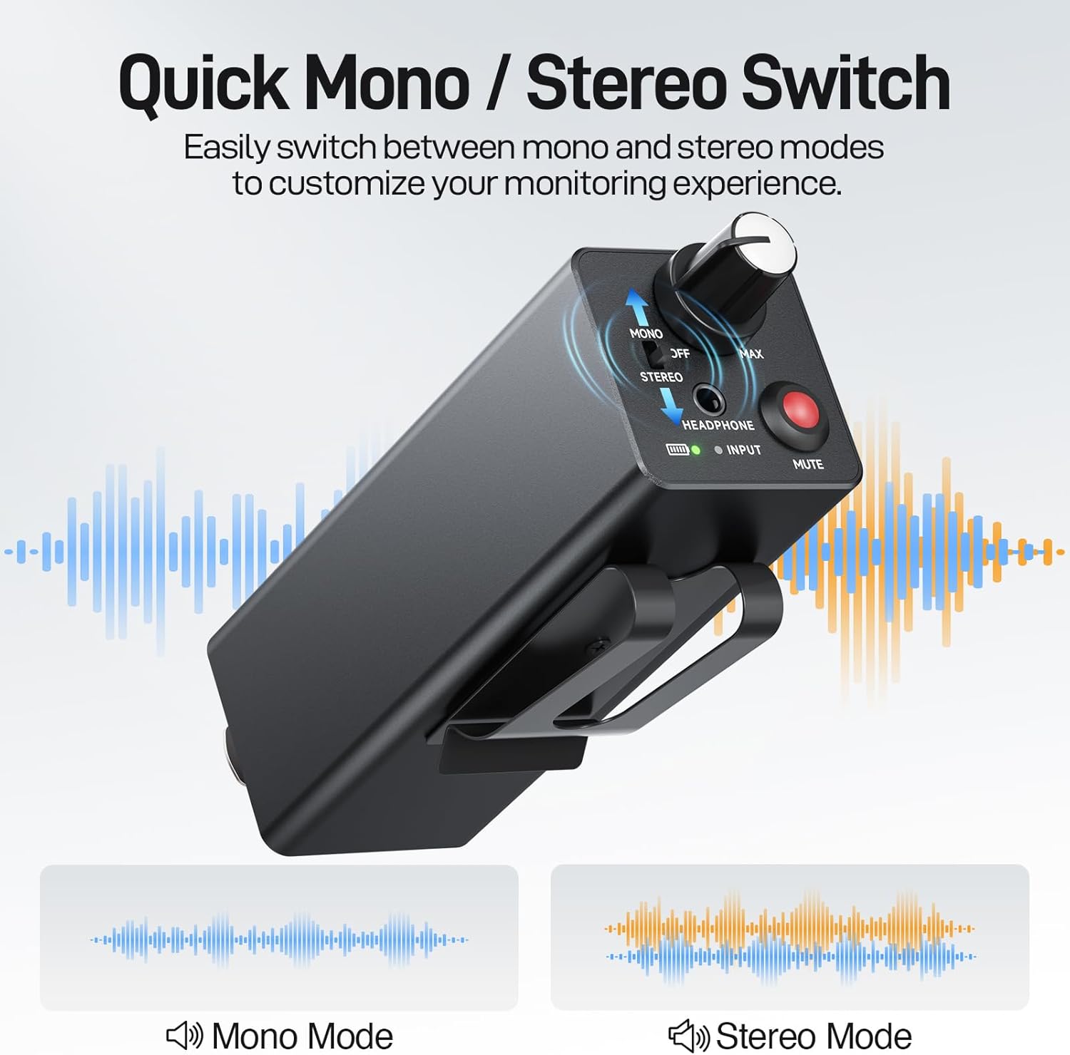 • Mono/Stereo Flexibility: With both mono and stereo modes, this personal iem amp allows you to easily switch between them based on your monitoring needs. Whether you need clear, interference-free sound in mono mode or the rich, immersive experience of stereo, this amplifier ensures consistent audio clarity throughout every session