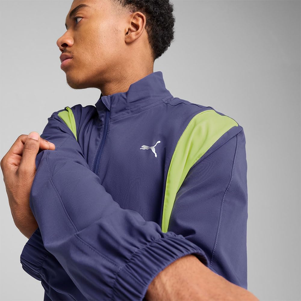 Enhance your racing game with the lightweight PUMA Jacket. Drycell technology to keep you dry, zippered pockets for essentials and zip closure for comfort. Perfect for those who like to stay active and stylish. Features & Benefits - Made with at least 50% recycled materials. DryCELL: Performance technology designed to wick moisture away from the body and keep you sweat-free during exercise. Regular fit. Long sleeves. Sewn-in pocket. Full-length zip. PUMA Brand Details This everyday jacket is designed for everyday health lovers. Body Style: Full Length Unlined. Material: Main Material 1: 88% Recycled Polyester, 12% Elastane, Plain Fabric, 90 g/m², Piece-Dyed, Chemical Absorption (Midori), DRYCELL (FUN/001)