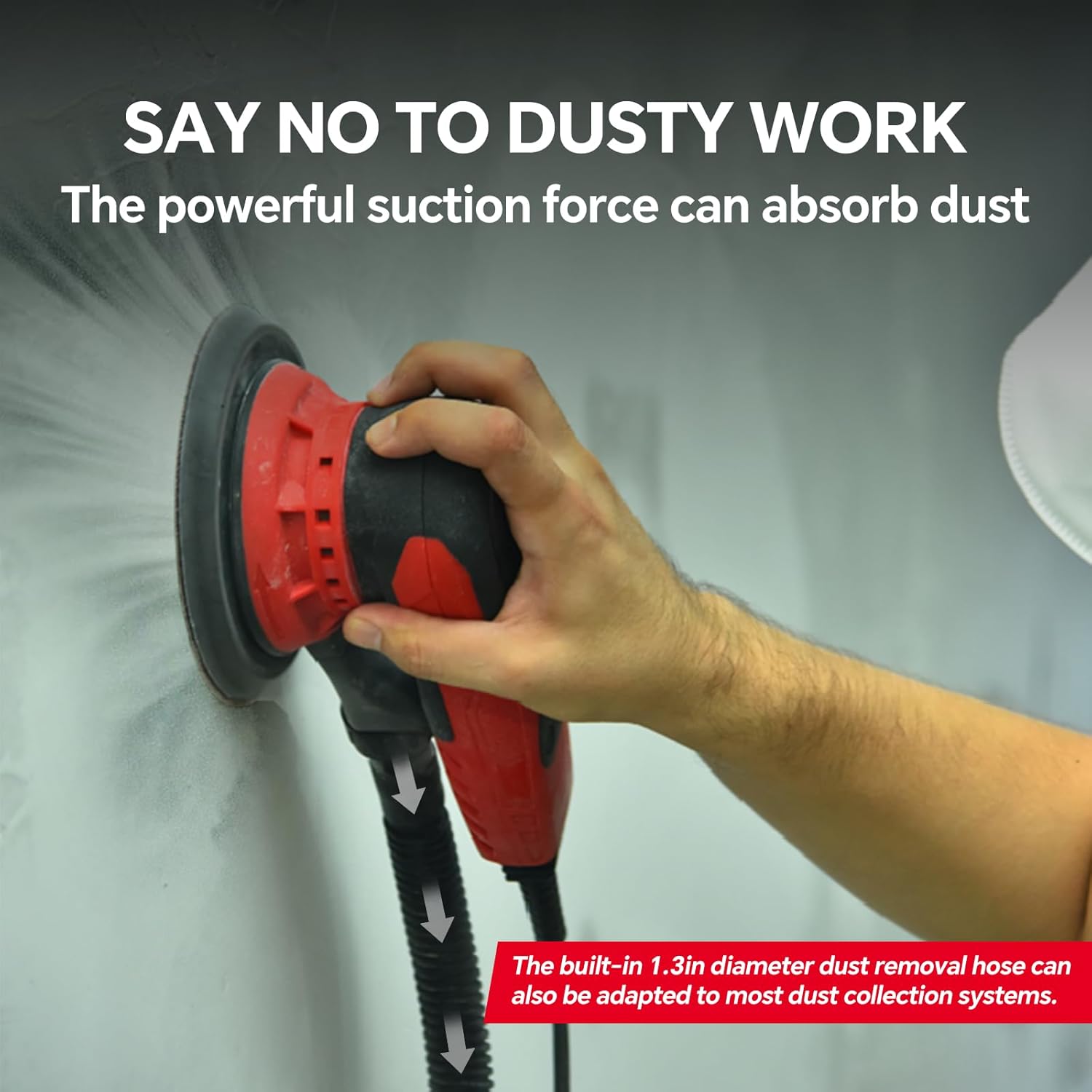 • 【Ergonomic Design】The symmetrical design of the random orbital sander 6 inch is suitable for both right-handers and left-handers. This sander is perfectly built for manual operation to reduce fatigue when carrying out overhead sanding work and a good feeling on edges, as well as convenient operation in any position. The built-in overload protection ensures additional safety.