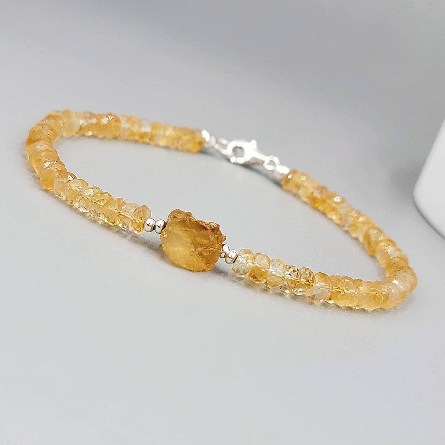 Product Details Stone Description: 3mm and 8mm raw gemstone Bracelet length: 7 inches Clasp Description: sterling silver lobster clasp Perfect Bracelet to have in your collection Perfect for gifting, it comes with a jewelry box Money back guaranteed if its not what you expect We provide good customer service, please contact us for any questions that you may have For Raw stones: It is usually difficult to have a particular shape and color for raw untreated stones. We specialize in different types of Raw natural Gemstones and crystal. what you receive, will not look exactly like the one in the picture as displayed, But it will look as beautiful and very similar.