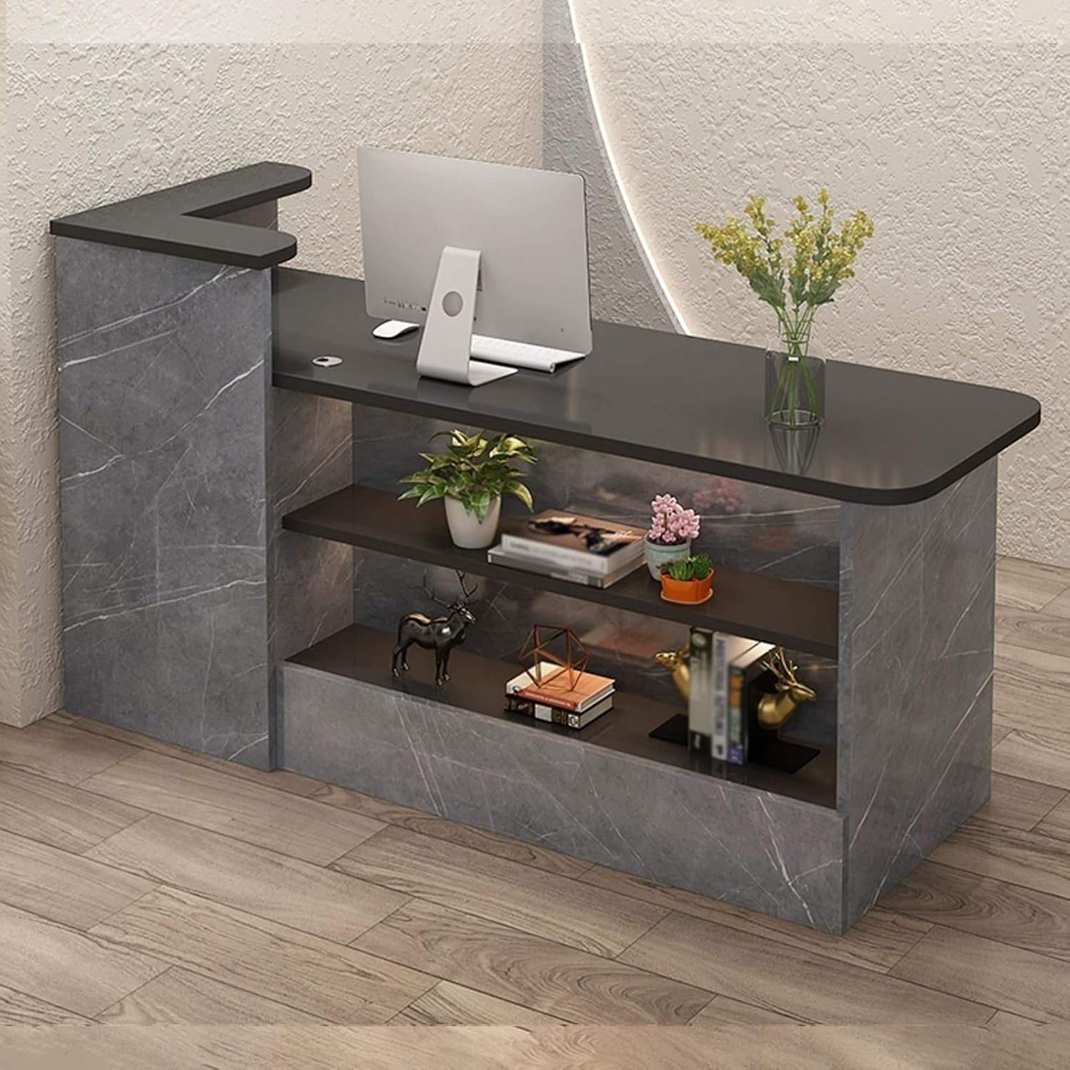 The cashier storage space uses double-layer lighted storage compartments outside, allowing your customers to notice your reception desk as soon as they come in. Suitable for a wide range of spaces including offices, beauty salons, and retail stores, providing a stylish and functional focal point for your business.Specifications:Product name: Reception deskMaterial: WoodColor:Gray+Black , White+Gray , White , White+Black , Style: Left, RightStyle: Modern and simpleLength: 100cm/39.3in, 120cm/47.2inWidth: 55cm/21.6inHeight: 100cm/39.3inApplicable scenarios: clothing stores, beauty salons, etc.Package Includes:1 x reception desk (excluding other items)Attention.1. Due to monitor differences, there may be slight color difference.2. Due to the measurement method, measurement method and other factors, there may be a slight error.