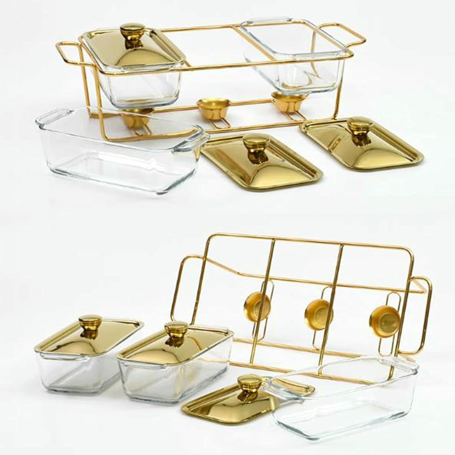 The heating plate is ideal for any catering provider or event host. Made of high quality ceramic, durable and easy to clean, with 2 handles, easy to move and prevents burns. Suitable for catering activities such as buffets, parties, weddings, family gatherings, etc. Specification: Material: Glass, Stainless Steel Process: High Temperature Cooking Color: Gold Capacity: Single Cell 1.3L Size: A-38.7*24.3*17.5cm, B-50.8*24*18.5cm Products include: 1*Plate Buffet Set for Heating