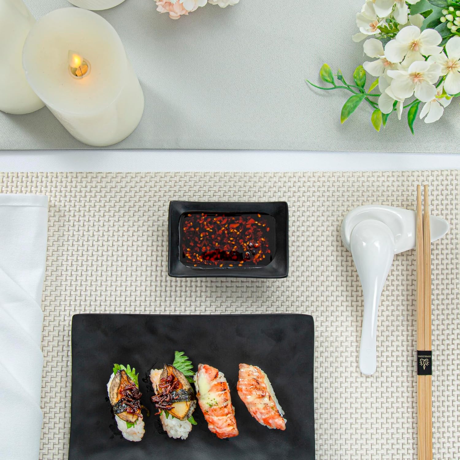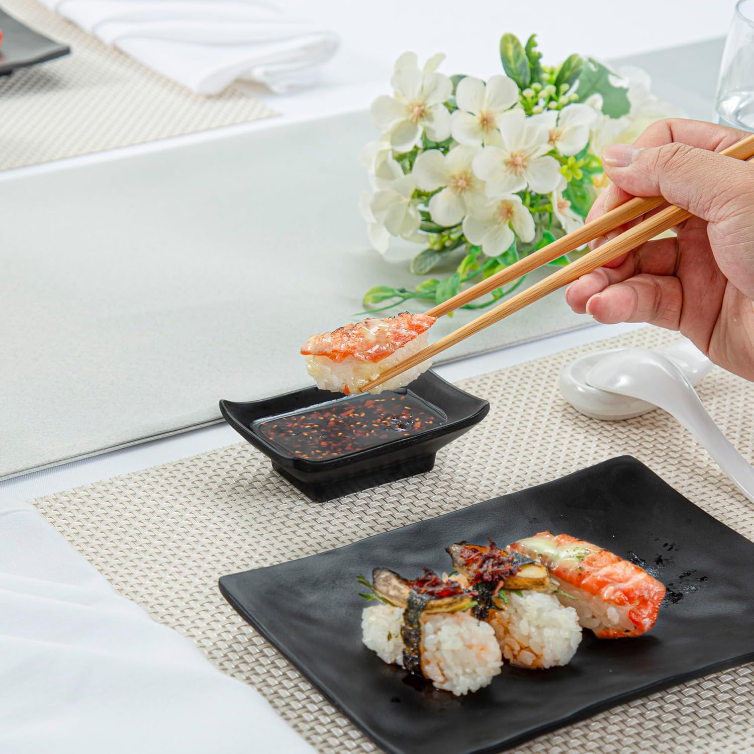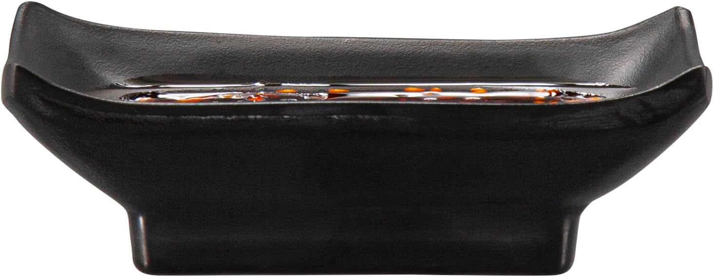 Use our Voga 1-ounce Rectangle Black Melamine Sauce Dishes to stylishly serve savory sauces and condiments with ease. Crafted from melamine, a durable type of plastic, these reusable sauce dishes are shatterproof. These tasting spoons are dishwashable and built for long-lasting commercial use. With a sleek black finish, these small rectangular dishes are great for elegantly displaying soy sauce along with fresh sushi at a buffet or beautifully serve tangy ketchup on the side of crispy french fries at a fast-casual restaurant. These chic melamine sauce dishes are perfect for any type of tasty sauce served at your cafe, buffet, restaurant, and more. Measuring 3.9 inches long by 2.6 inches wide by 1.3 inches tall, these 1-ounce black sauce dishes are perfect for catered events. Shipped in a 10 count box.