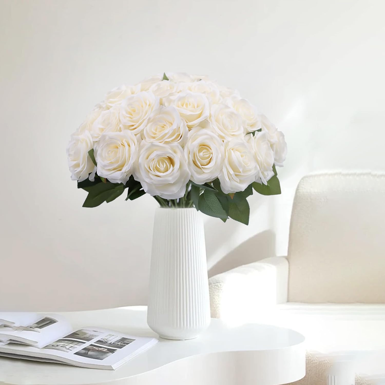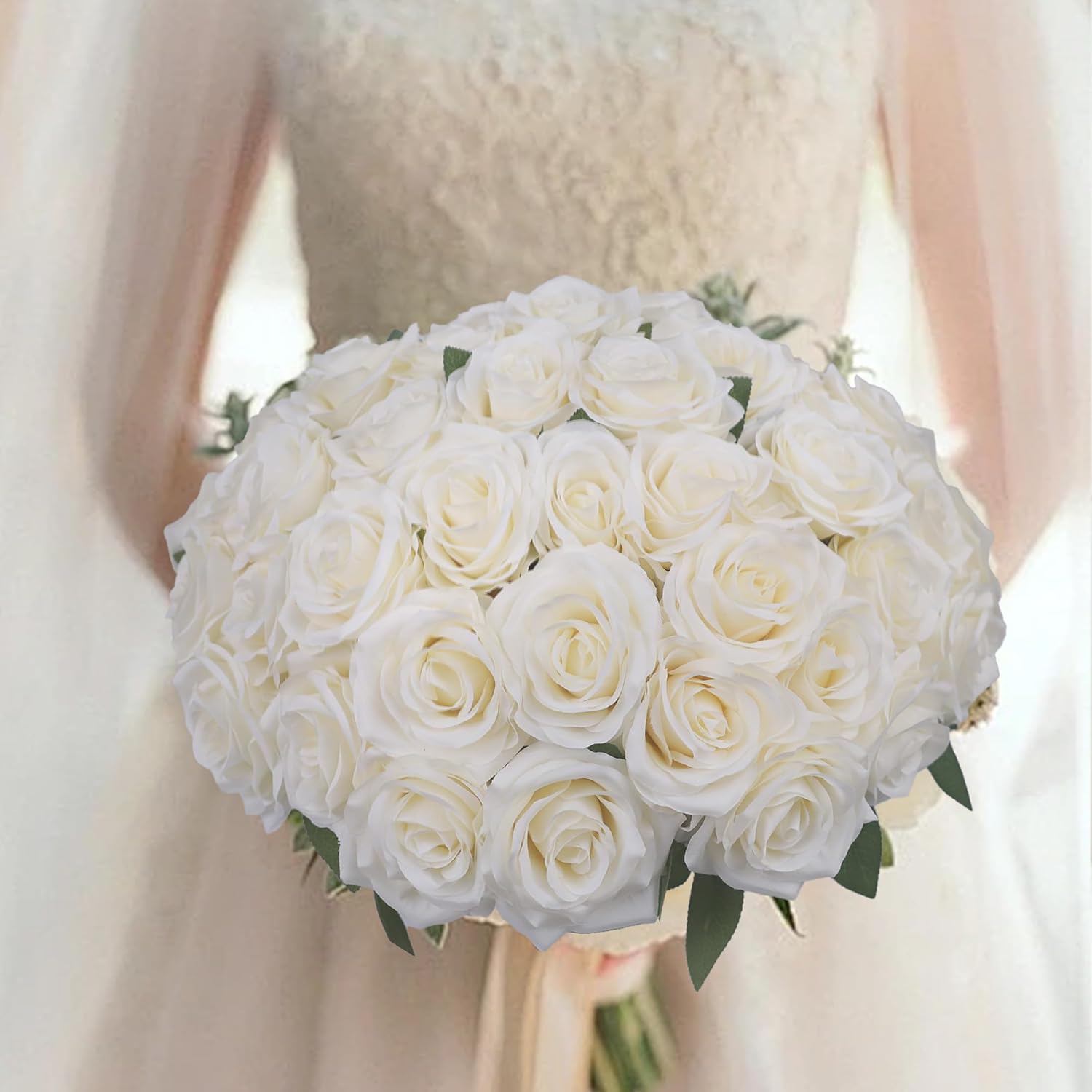 NEVISI Artificial Rose Flowers Silk Roses rose flowers These roses are made of high quality cloth which gives them the look of fresh roses. Rose head is approx. 3.93 inches across. Each rose has it’s own wire stem which is approx. 17.7 inches long. The rose flowers with long stems , which makes them very easy to work with. It’s easily bent or cut down as you need so they are perfect for making bouquets, centerpieces, kissing balls, boutonnieres, cake flowers(protective film needed) or any other flower decorations/arrangements that you want at your wedding, party, baby shower or home,etc. Easy to care. And the price is Cheaper than the real flowers.