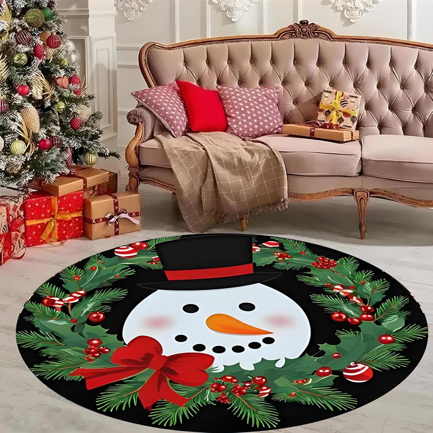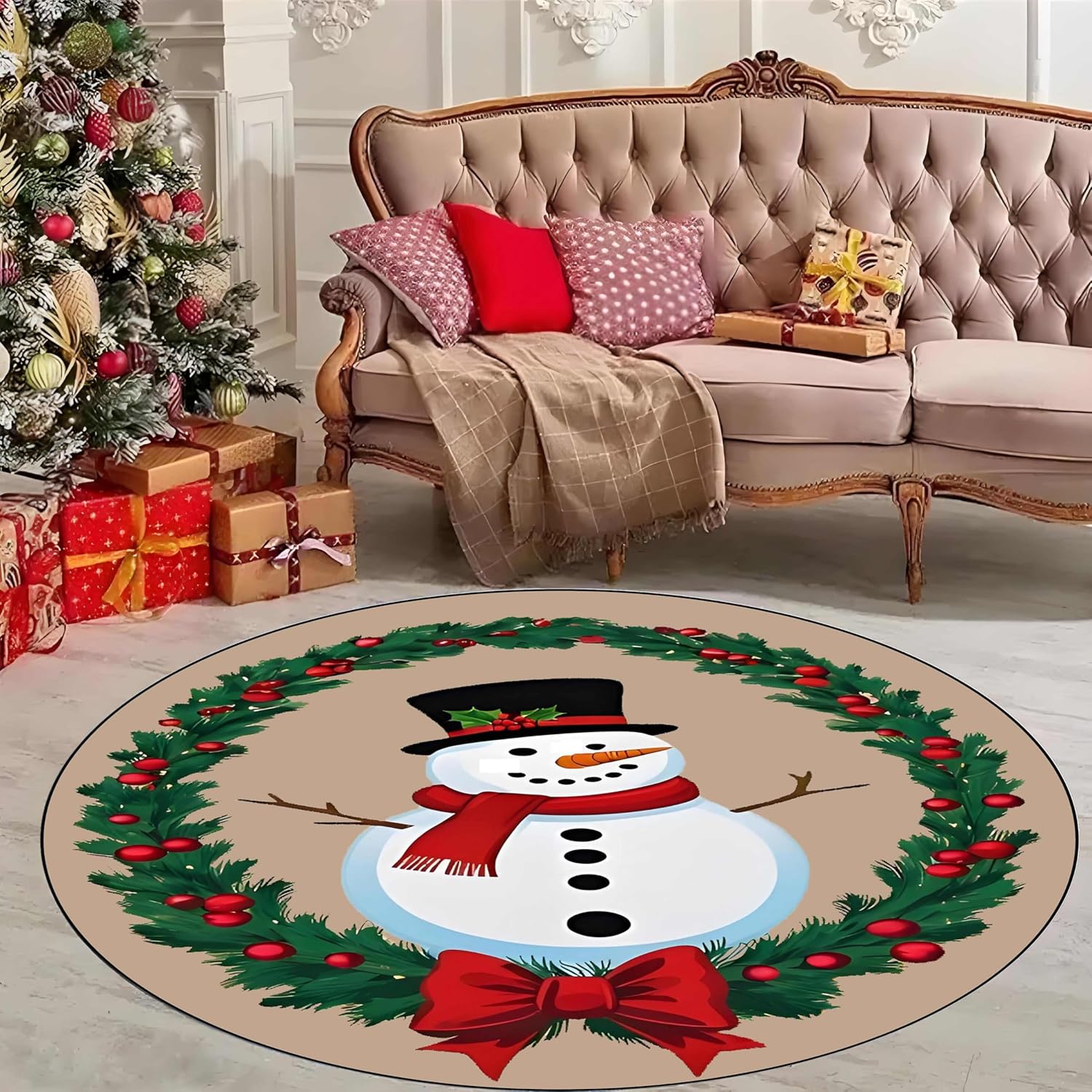 Product Description:Christmas Round Snowman RugTransform your home into a winter wonderland this holiday season with the Christmas Round Snowman Rug! This charming rug is more than just decor; it’s an invitation to create warm memories and festive cheer.Crafted from premium crystal velvet fabric, this rug offers unparalleled softness and durability, ensuring that it withstands the test of time while maintaining its luxurious feel. The delightful 3D printed snowman design captures the spirit of Christmas, bringing joy to your home or making the perfect gift for loved ones.Key Features:- **Durable & Soft**: Made from high-quality materials that provide long-lasting comfort.- **Fade-Resistant Colors**: Bright hues that stay vibrant even after multiple washes.- **Non-Slip Backing**: Equipped with thousands of rubber grip points to keep the rug securely in place for safety and peace of mind.- **Versatile Use**: Ideal for living rooms, bedrooms, or as a playful mat for kids—perfect under desks, dining tables, or in kitchens.- **Easy Maintenance**: Shake off dirt or machine wash for a deep clean without losing its charm.This stunning snowman rug is not just a decoration; it's a festive experience that invites family and friends to gather around. Whether you’re looking to enhance your own holiday decor or seeking a thoughtful present for parents, colleagues, or neighbors, this rug fits the bill perfectly.Don't miss your chance to elevate your holiday spirit! Choose your Christmas Round Snowman Rug today and start celebrating!Kind tips: - Due to transportation reasons, the carpet will have some creases. It will return to its original state after a period of time.- Because shooting technology, computer monitors, mobile phone screens other factors will affect the color, Please refer to the actual product received.