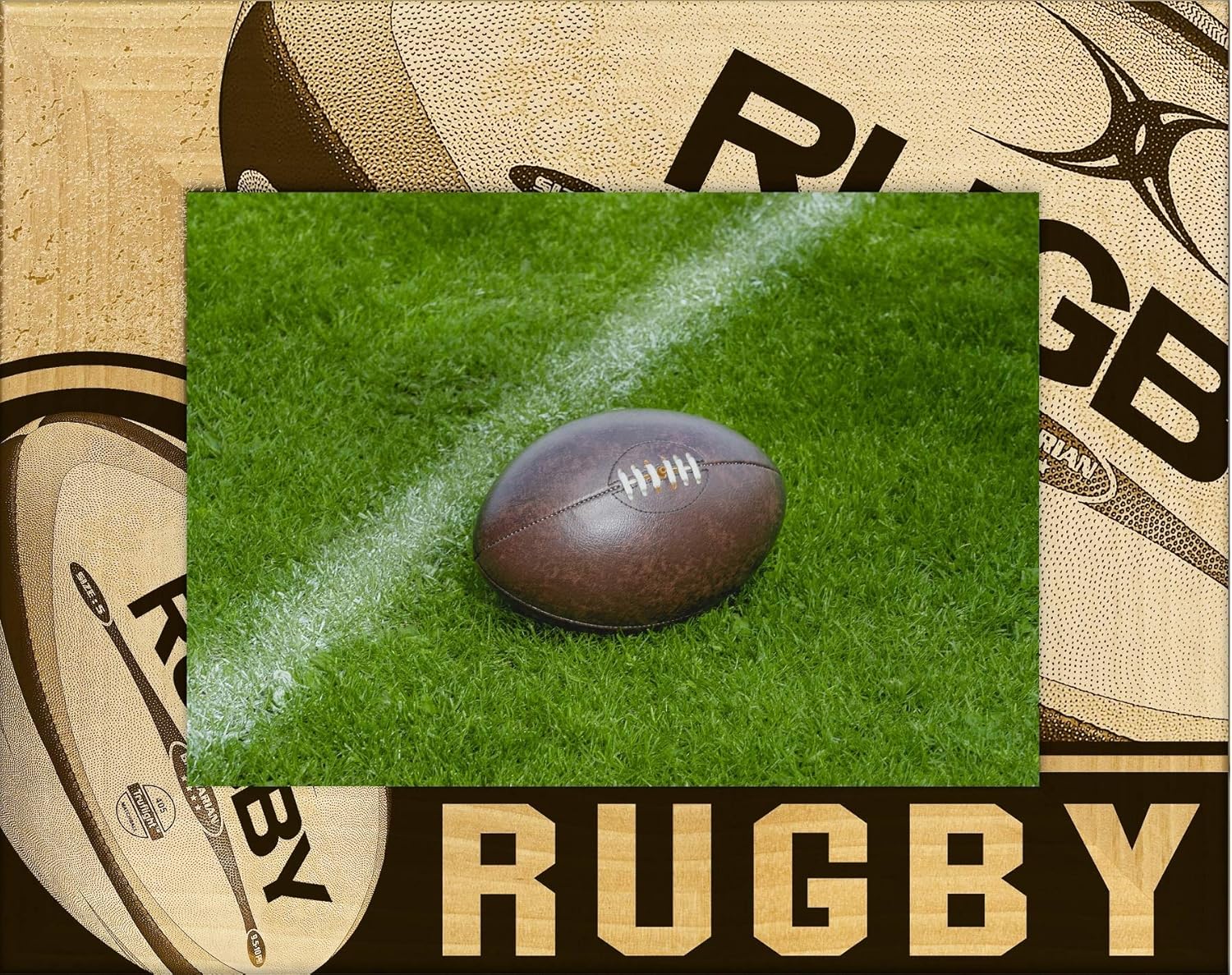 Rugby Laser Engraved Wood Picture Frame (5 x 7)Picture Frame Measures 9.50 x 7.50 inchesPicture Frame Can be hung or it has a Kick Stand for sitting uprightPicture Frame Made in the USA