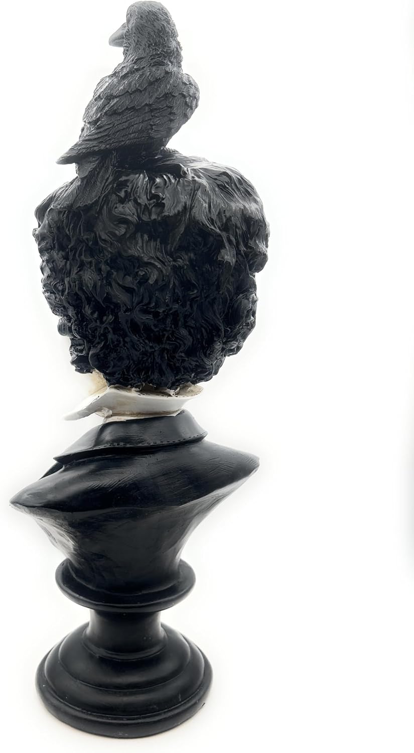Celebrate Gothic Literature and Art with the Rustix Edgar Allan Poe Bust Statue The Rustix Edgar Allan Poe Bust Statue is a captivating tribute to the iconic poet and writer, Edgar Allan Poe. Featuring a bust of Poe with a raven perched on his head, this decorative figurine pays homage to his masterpiece, “The Raven,” blending literary elegance with gothic charm. Masterfully Designed for Timeless Appeal Crafted from durable resin, this bust is designed to showcase intricate detailing that brings Poe’s expressive features and the raven to life. Its gothic and Victorian-inspired design makes it an ideal centerpiece for any literary or decor collection. A Statement Piece for Any Decor Style Whether displayed on shelves, desks, mantles, or as part of a themed Halloween setup, this Edgar Allan Poe bust enhances the ambiance of any room. Its timeless design seamlessly fits gothic, Victorian, or literary-themed spaces, adding an air of sophistication and intrigue. An Ideal Gift for Poe Fans and Collectors Looking for the perfect gift for a book lover, gothic decor enthusiast, or literature fan? This Edgar Allan Poe bust is a thoughtful and unique choice. Whether for a birthday, holiday, or special occasion, it’s a memorable keepsake that will delight fans of classic literature. Compact Yet Striking Display Measuring [insert dimensions], this bust is designed to make an impact without taking up too much space. Its compact size ensures it fits effortlessly into small or large decor arrangements while maintaining its bold and artistic appeal. Add a Literary Icon to Your Collection Today Bring the timeless legacy of Edgar Allan Poe into your home with the Rustix Poe Bust Statue. Combining gothic elegance, literary inspiration, and exceptional craftsmanship, this figurine is a must-have for collectors, book lovers, and decor enthusiasts.