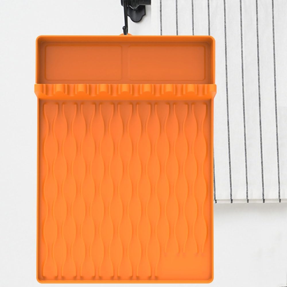 Feature:Safe And StableThis grill mat is made of food-grade silicone material, safe and odorless, so you can use it with peace of mind during the grilling process. It has good thermal stability and can withstand high temperature environment, which makes it an ideal helper when barbecuing.Good ElasticitySilicone tool mat has good elasticity, and you can knead and pull it as much as you want, without deformation, abrasion or breakage. The soft texture makes it easier to store, and whether rolled up or folded, it can be easily stored, saving valuable kitchen space.Neat And OrganizedThe grill side shelf mat is uniquely partitioned, including a seasoning area and a placement area, with 8 slots for shelves, allowing you to place a variety of items in an orderly manner to meet your diverse barbecue needs. At the same time, the unique non-slip ripple and raised edge design effectively prevent items from sliding and grease splashing, ensuring stability during use.Easy To CleanThis griddle tool mat is very easy to clean, which can be washed with soap and water, saving time and effort. After cleaning, it can be easily hung to dry, realizing multiple recycling, green and economical.Multi-purposeThis mat is designed with large size (40.6*29.2cm/15.98*11.5in) as a whole, which is not only suitable for placing spices, brushes, spoons, barbecue skewers and other tools when barbecuing, but also as a large spatula mat for daily use in the kitchen, and so on. It makes your kitchen, cooking space and countertop more neat and organized and improves space utilization.Specification:Name: Grill MatMaterial: SiliconeColor: Orange, Grey, Black(Optional)Size: 40.6*29.2cm / 15.98*11.5inWeight: 302g / 0.67lbPackage Included:2 * Grill Mat
