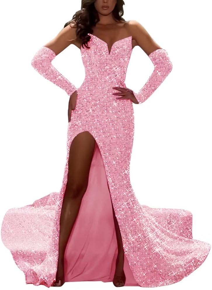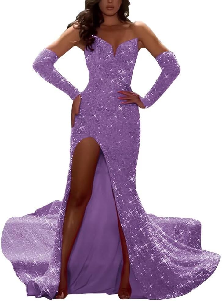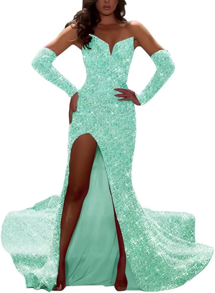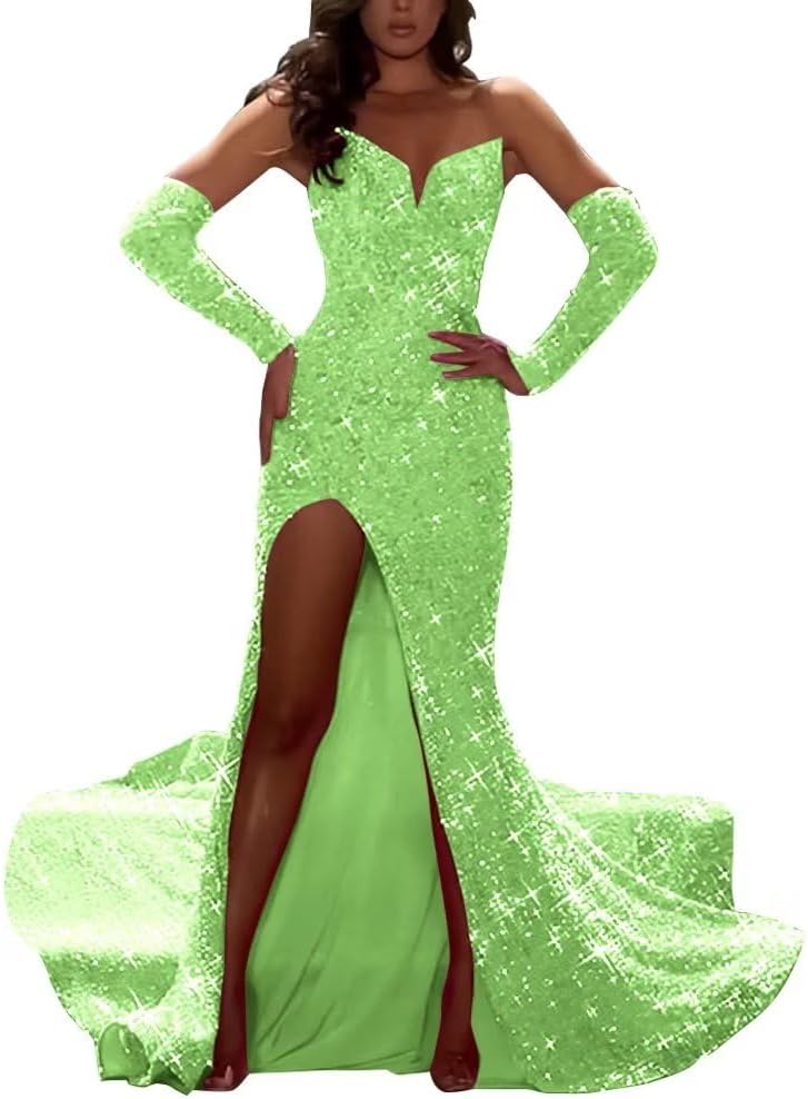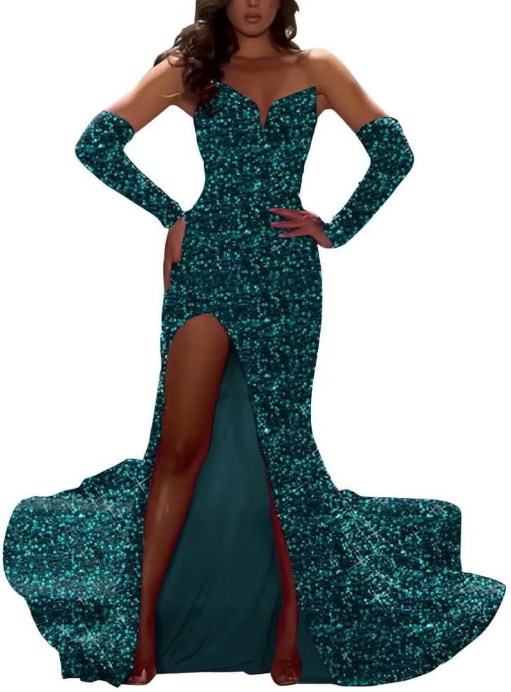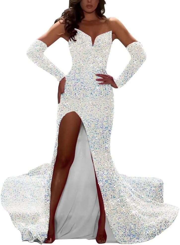 | Material Type | Sparkly Prom Dresses With Slit Mermaid Evening Dresses With Sleeves Detachable Sequin Homecoming Dresses Long Black US04 |