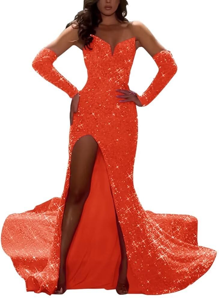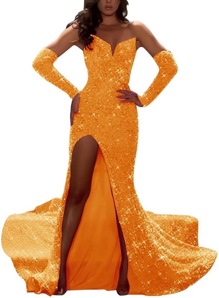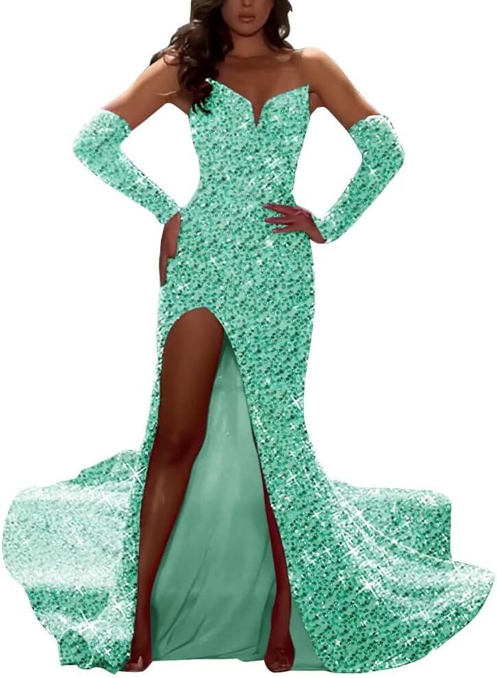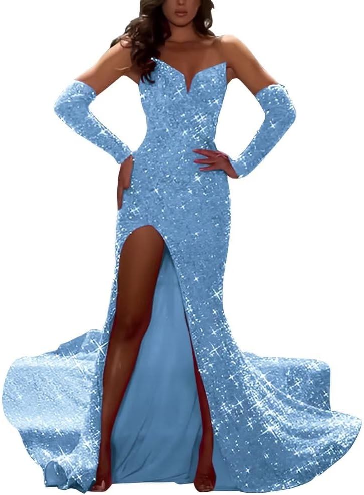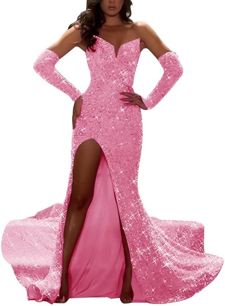 | Material Type | Sparkly Prom Dresses With Slit Mermaid Evening Dresses With Sleeves Detachable Sequin Homecoming Dresses Long Black US04 |