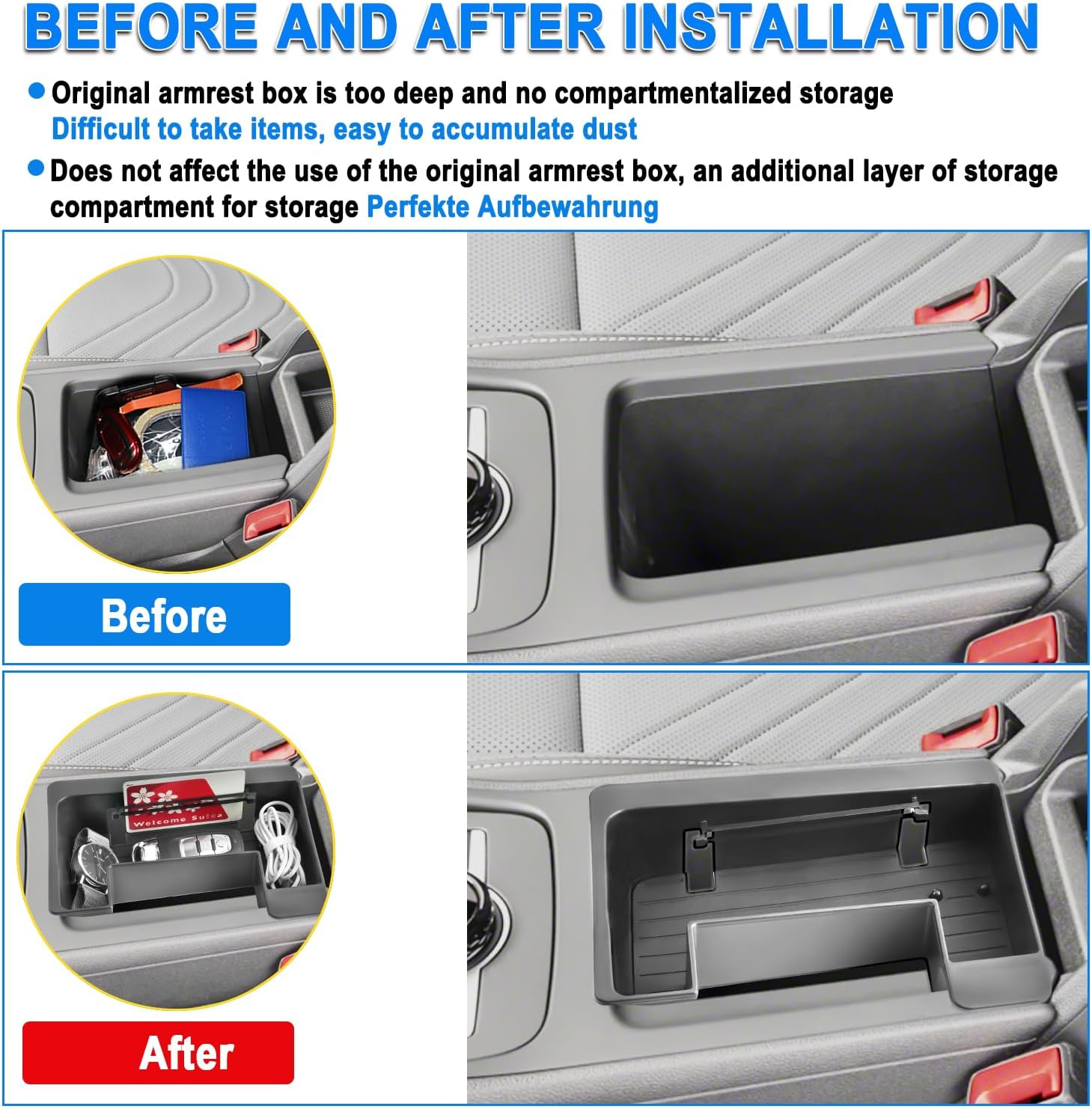 SHAOHAO for 2026 Volkswagen Tiguan Center Console Organizer Tray for 2025 2026 Volkswagen Tiguan Accessories (S/SE/SE R-Line Black/SEL R-Line) Console Tray 2026 Tiguan Secondary Storage Box OrganizerFeatures:Make your car interior looks more orderly and sleeker and well manages the small items well, so you coul quickly to find what you frequent needAllow you to store stuff on the top and make things easier to find, provide much needed top space storage for all sorts of thingsProvide extra storage space for small items like paper towels, sungalsses, pens, coins, changes, phones, wallets and other small objectsVery easy to install and looks good on the dash. Nicely finished and good placement for extra storage, just like a factory optionPremium ABS plastic center console organizer with non-slip textured mats to prevent items from slipping and rattling, and avoid noise while drivingCheck Firstly:Please kindly check your car before placing orderPackage:1 Pcs x Center Console Organizer Tray