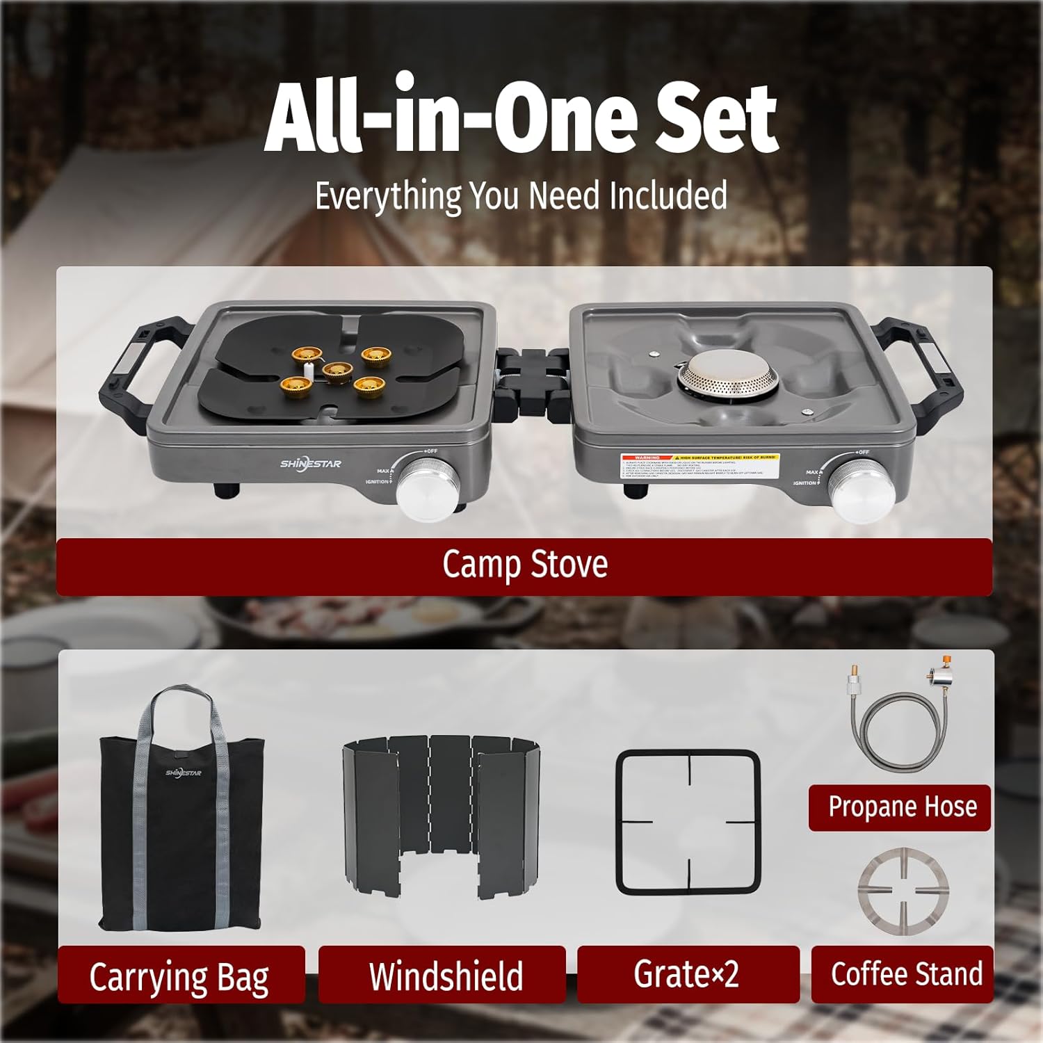 | Included Components | Foldable Camping Stove |