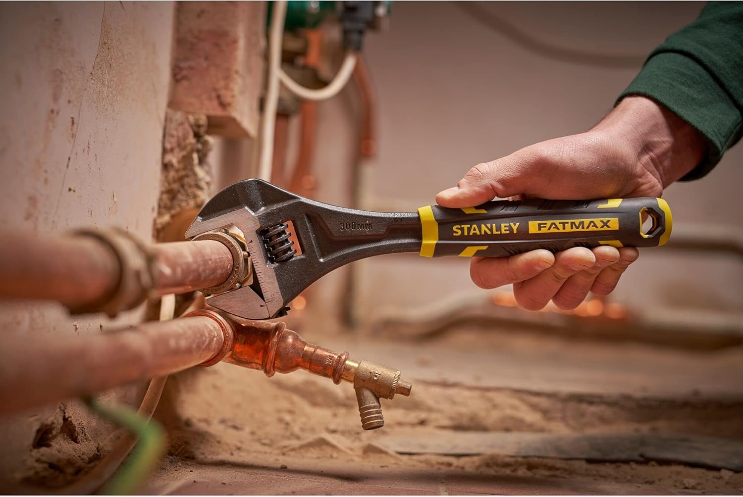The Stanley FatMax Quick Adjustable Wrench has a black phosphate finish for maximum strength and durability. Its thin/wide jaws offer greater accessibility when working in tight spaces. They also have a 15° offset angle to provide a firm grip and the best reach. Metric and imperial scales for fast and accurate settings.