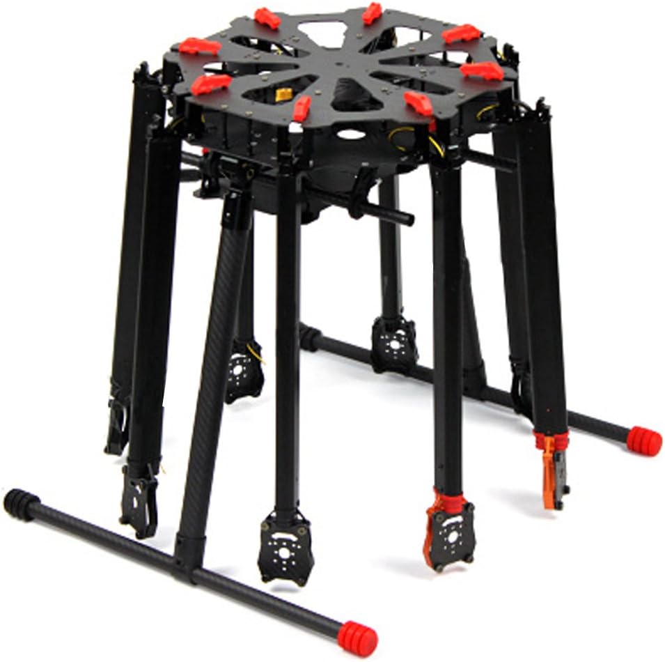 Product Description: 8 Rotors Provide Sufficient Power, Even If One Axis Unexpectedly Stop Working, But Also to Ensure That The Aircraft is In a Stable Condition. Whole Has Lightweight, Portable and Convenient. Maximum Take-off Weight of About 10kg, Easily Carrying 5d Level Aerial Equipment, with 15 Minutes of Battery Life, as Well as 12 Minutes of Effective Working Time. Feature: 1. Black and Red Color Main Frame Design Has Strong Visual Effect. The Battery Hang Under The Frame Design Make The Gravity Center Lower, and It Provide More Installation Space. 2. The Tarot x8 Comes with High Strength PCB Board; The Power Plug Adopts The as150 Anti-Spark Connector. The User Could Get More Flight Time From The Light Frame. 3. The Electronic Retractable Landing Skid Has Reverse Power Protection and Failsafe Function. The Retractable Landing Skid Could Provide Broader Views for Aerial Photography. 4. The Tarot x8 Comes with Metal GPS Mount. It is Plug Type, Easy to Folding. 5. There is Air Deflector Groove On top; It Could Bring Good Heat Dissipation Effect. Product Specifications: Symmetric Motor Wheelbase: 1050mm Folding Propeller Specifications: 15 Inch Arm Length: 416mm Arm Weight: 106g Centre Plate Diameter: 338mm Undercarriage Clearance Height: 391mm Battery Specifications: 15c, 22.2v, 10000-2000mha (Not included) 6s Brushless Esc: 40a (Not included) Maximum Power Consumption: 4000w Hover Power: 1500w (9.5kg) Hover Time: 15min Weight: 2250kg total Weight: 2.7kg Accessories Reference Number: Rotor Specifications: 1555 Folding Propeller Clamp Tl100d04 Brushless Motor: 4114 / 320kv Multi-Axis Brushless Motor Tl100b08 Brushless Esc: Hobby Wing Hooray 40a, 6s