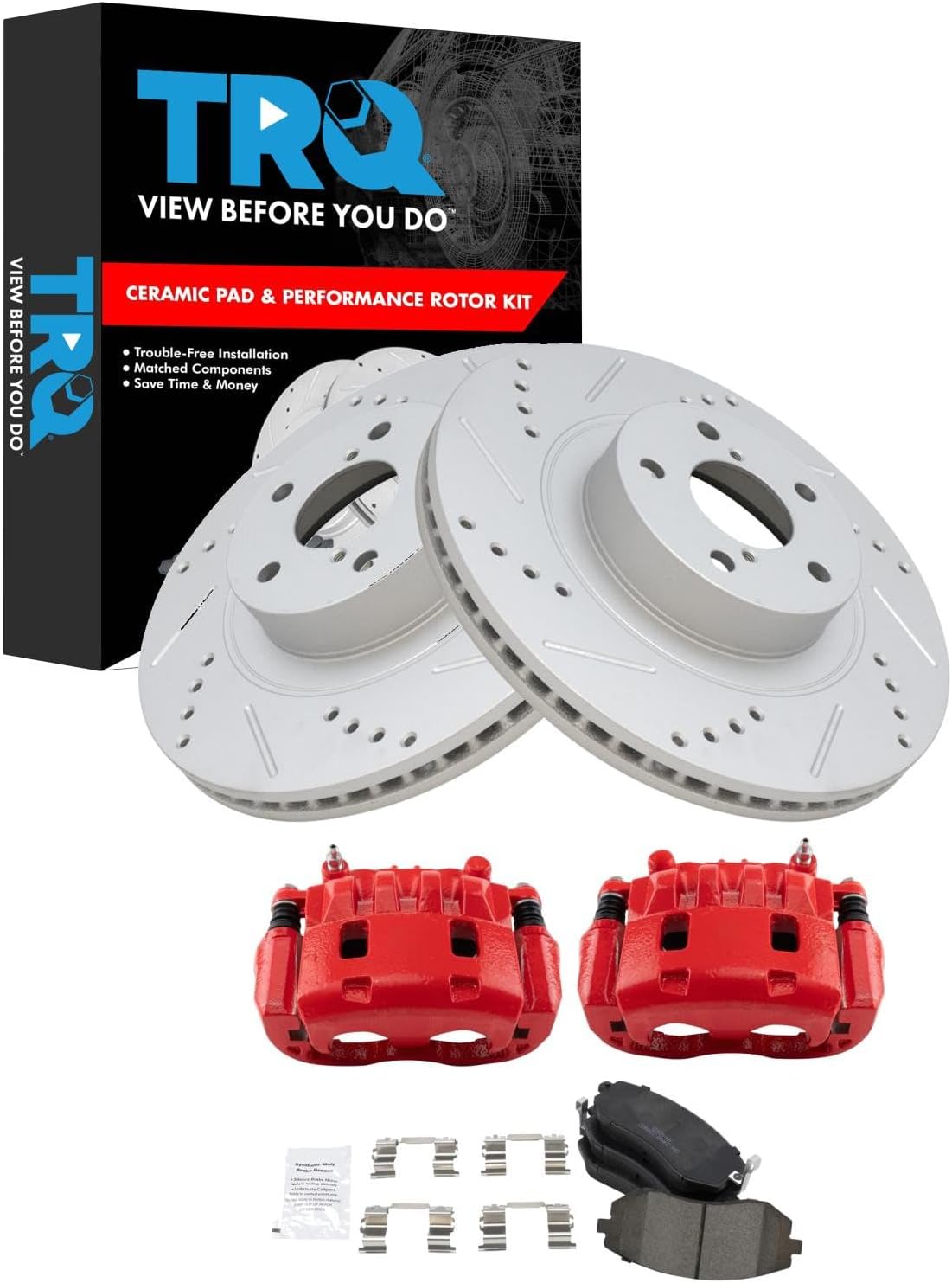 Ceramic Performance Brake Pad & Rotor KitKit Includes(1) Front Ceramic Brake Pad Set(1) Front Premium G-Coated Performance Brake Rotor Set(2) Front Performance Brake CalipersFitmentChevrolet HHR 2006 - Front 2007 - LS Front 2007 - LT Front 2008-10 - Front with Rear Drum Brakes 2011 - FrontProduct AttributesFriction Material Composition: CeramicGrade Type: PerformanceCaliper Color: RedSurface Type: Slotted X DrilledBrake Pad Friction Material: CeramicProduct Line: PerformanceBrake Rotor Coating: Premium G-CoatedProduct Features Positive Molded: Less dust resulting in clean wheels Electrostatic Coated: Long-lasting rust protection G3000 Casting Alloy: Reduced noise and improved wear resistance Application Specific Design: Extended service life, no modificationsItem DetailsTRQ brake kits are designed to restore your brake system to like-new performance. TRQ brake pads are positive molded, thermal scorched, chamfered, and utilize a multi-layer shim for enhanced performance and service life. TRQ G-coated rotors have long-lasting rust prevention, perfect for wheels with large openings that expose the rotor and rotor hat during daily drives. All products are fit and road-tested in our Massachusetts R&D facility to ensure we deliver on our promise of Trusted Reliable Quality.Reference Numbers15243704158082042088178622820406258098462595744055122580382BD126343BR55122CLA40271CLA40272EHT1160HFRC11617FRC11618MGD1160CHPRT5661SGD1160C