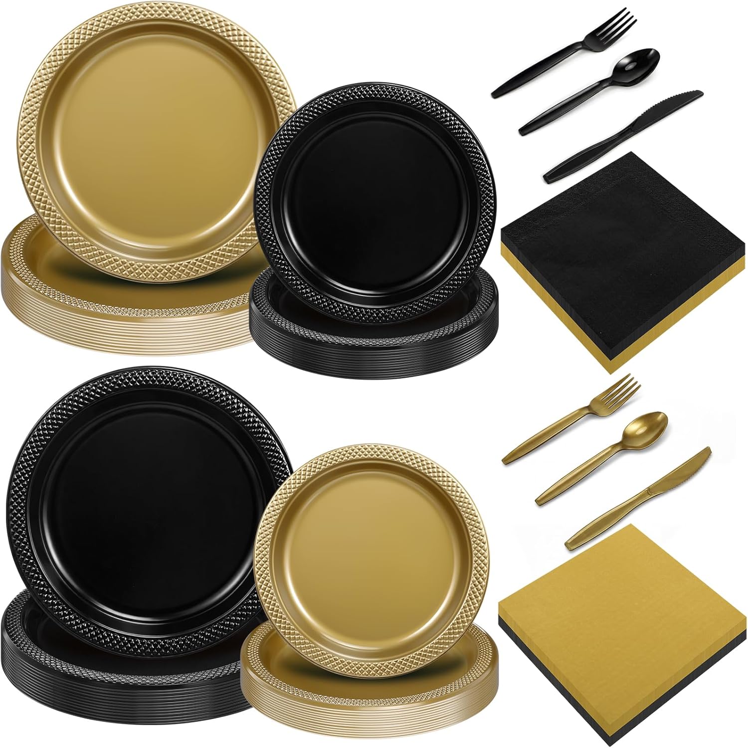 Features: This disposable plastic plate features a stylish color scheme, adding a touch of your dining experience, and the solid color plastic plate set is suitable for various occasions, such as parties, Valentine, weddings, family gatherings, picnics, anniversaries, birthdays, or celebrations. Specifications: Material: plastic Color: blue, orange Size: Plate: 9 inch / 23 cm, 7 inch / 18 cm Spoons Forks Knives: 6.3 inch/ 16 cm Napkin: 13 inch/ 33 cm Package includes: 12 x Blue dinner plate (9 inch) 12 x Blue dessert plate (7 inch) 12 x Orange dinner plate (9 inch) 12 x Orange dessert plate (7 inch) 24 x Plastic spoons 24 x Plastic forks 24 x Plastic knives 24 x Plastic napkin Notes: Manual measurement, there may be some errors in size Due to different screen displays, colors may vary slightly