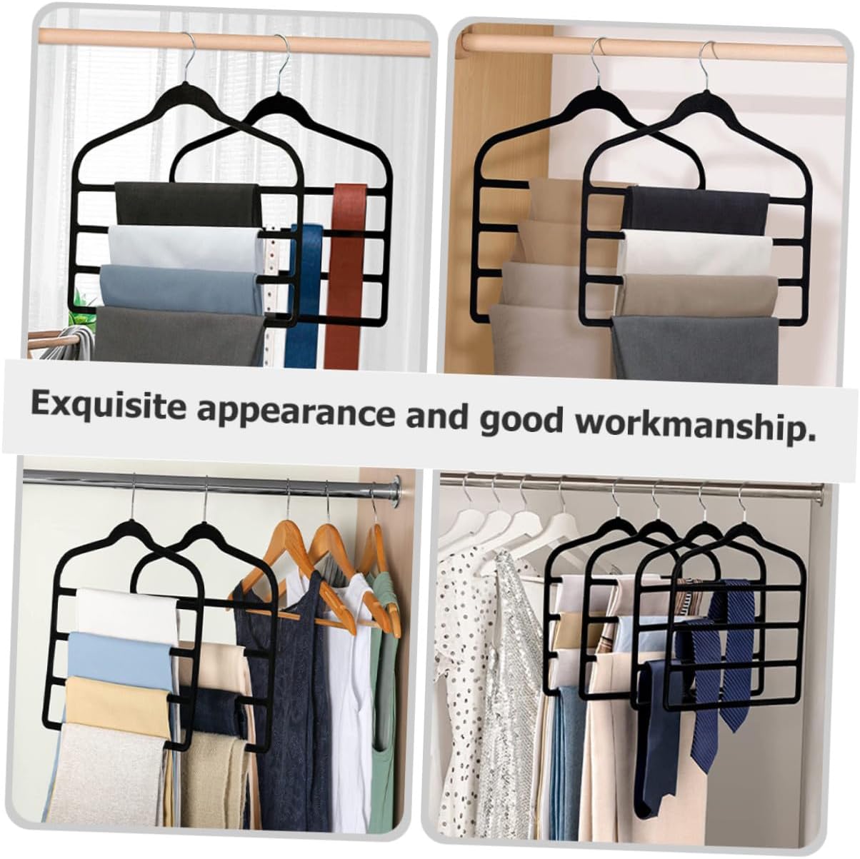 Package Include 5 x hanger Characteristics -Material:Abs flocking multi layer pants rack -Color:Black pants clothes rack -Product Info:Pants stand -Size:45.00X42.00X0.50cm/17.68X16.51X0.20in pants racks hanging -Suitable for small laundry rooms, wardrobes, dormitories, hotels and bedrooms multiple pant hanger. -The creative design will give you a wonderful experience and bring you a good mood multi-tier trouser rack. -The storage is simple and clean, comfortable and convenient to use, and not easy to deform pants hanger space saving. -The material is , the bearing is sturdy, and the corrosion resistance is high space saving clothes hangers. -Help you maximize your wardrobe space while keeping it neat and organized! multi pant hangerGoods Descriptionclothes hangers for pants These hangers are an .hangers pants Pants hangers save space, are made of ABS material, are strong and do not warp.space saving hangers clothes Space saving hangers are light weight and very , do not deform, strong load carrying capacity, .clothes hanger Having several pairs of jeans on the same rack is ideal for people who have more clothes than space to keep your pants organized