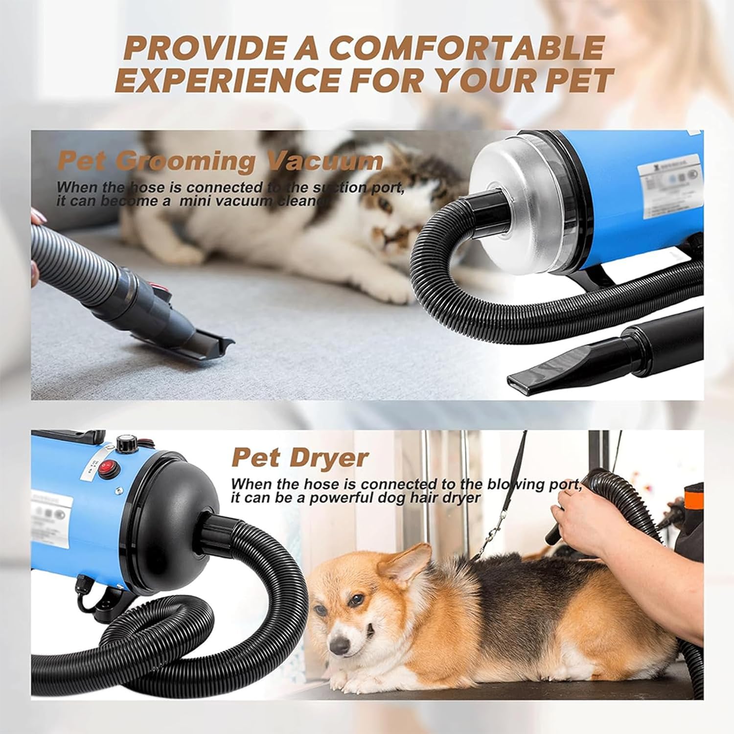| Specific Uses for Product | Variable speed, drying and hair removal, heatable, pet grooming, pet hair dryer |