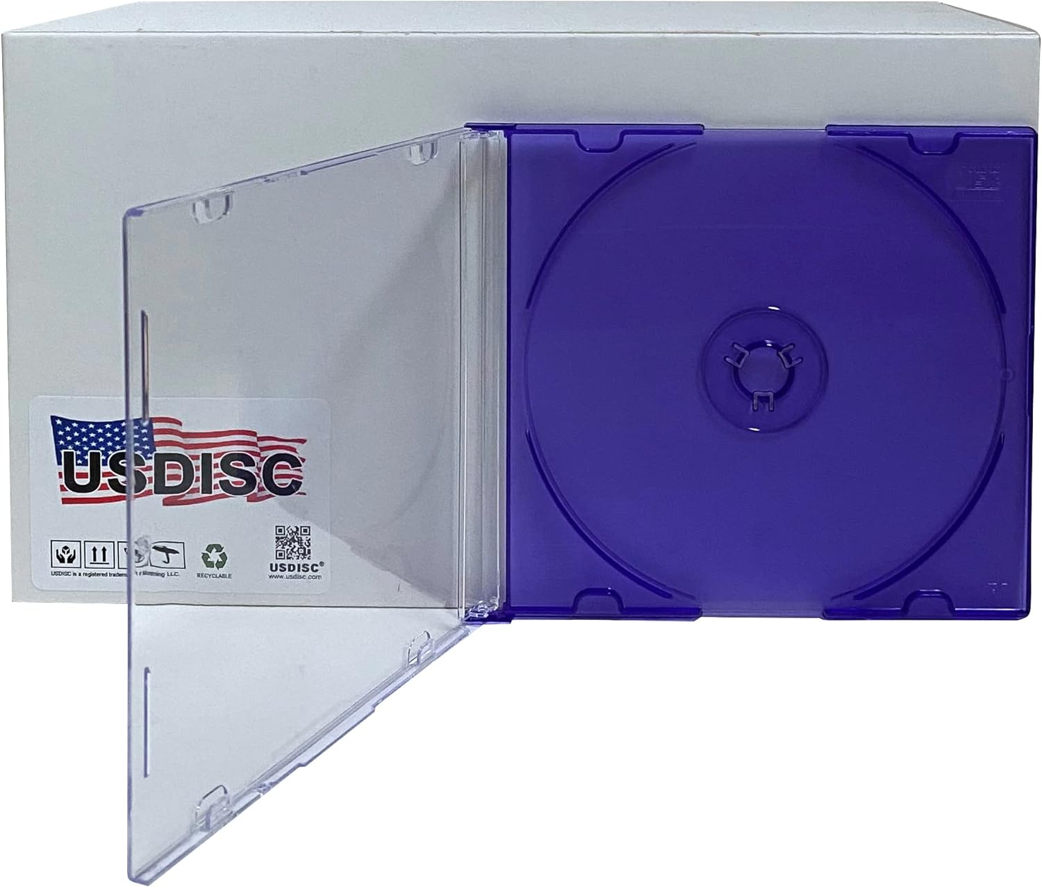 USDISC CD Jewel Cases Slimline 5.2mm, Single 1 Disc, Multicolor, Pack Of 100- Mft Part #: USD01147-100- Size: Slimline- Spin Size: 5.2mm- Capacity: 1 Disc SingleIt is a 2 piece construction with a tray. The front of the slimline CD jewel case can hold a booklet. The back of the jewel case will hold 1 disc. Protect important discs from scratches and dust with these slim jewel cases. Made with hard, sturdy plastic, these slim jewel cases stand up to the wear and tear of long-term storage.USDISC® products are assembled/packaged in the USA.