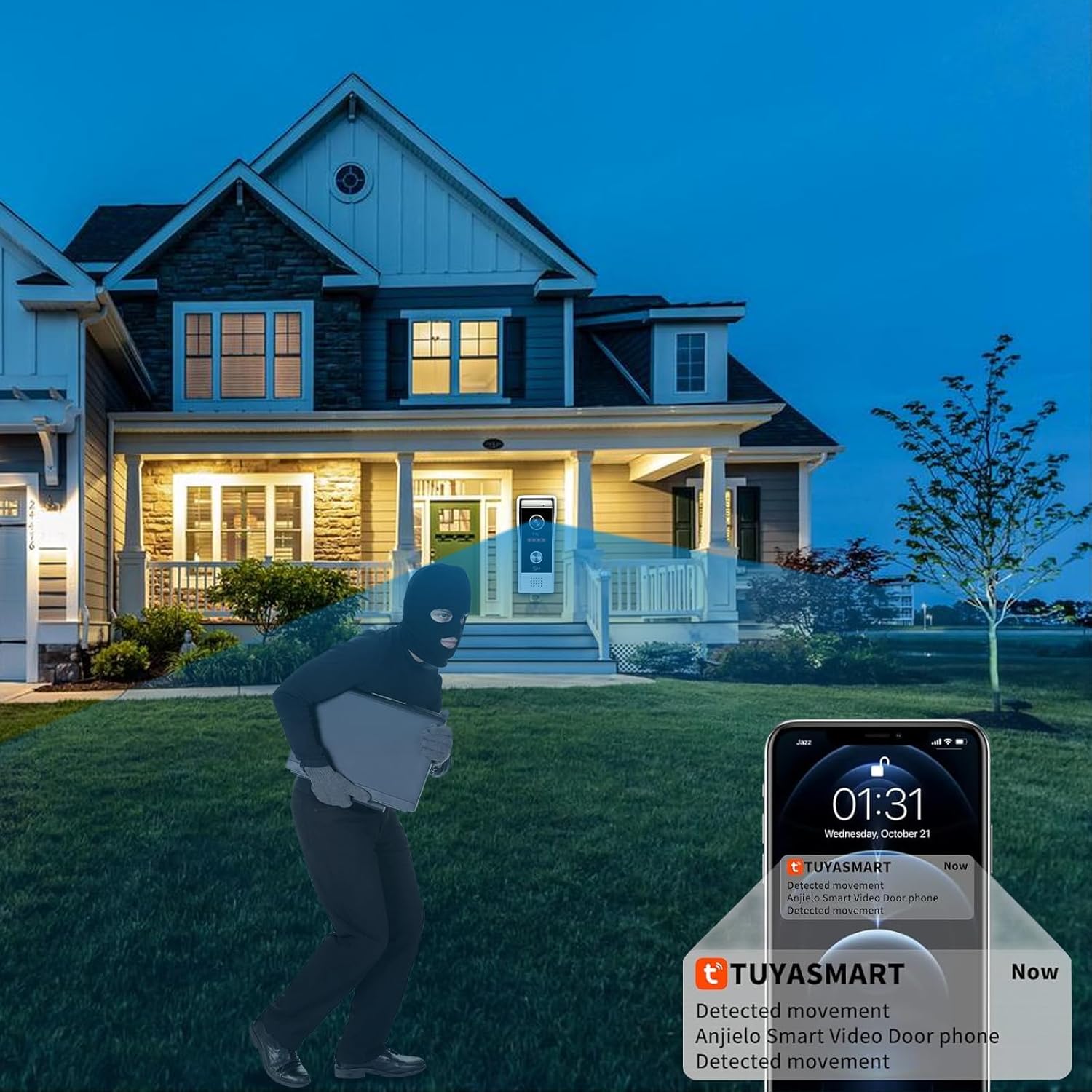 • 【Motion Detection:】Stay connected and informed with real-time monitoring directly to your smartphone. As soon as motion is detected, you will receive an immediate notification, allowing you to view the live feed from anywhere at any time. Additionally, our two-way audio feature empowers you to communicate with visitors or deter unwanted intruders by speaking through your mobile device.