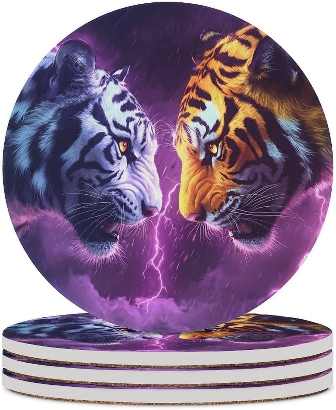 Cute Printed Round Drinks Absorbent Ceramic Coaster with Cork Base Suitable for Kinds of Mugs, Cups, Prevent Tabletop Wear And Scratches, and is Easy to Clean