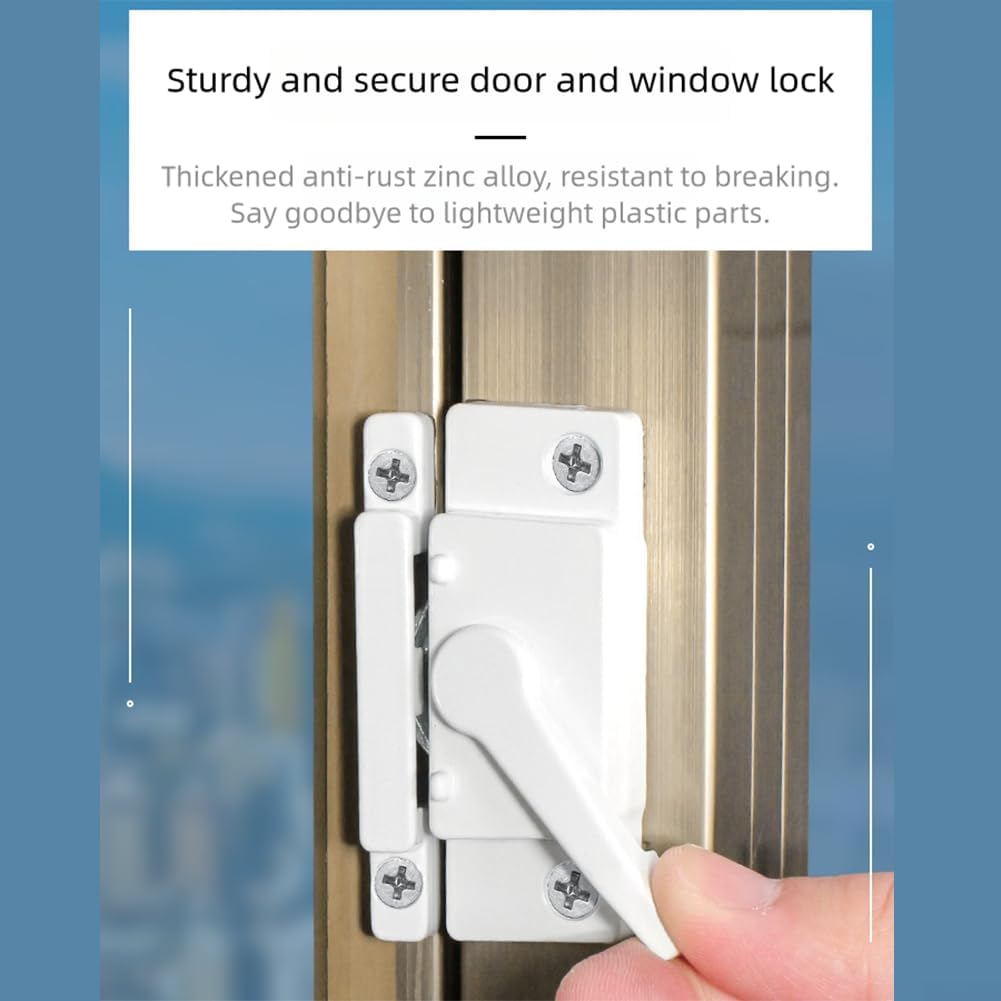 Features:*Comprehensive Package: This set includes 10 window sash locks along with 40 screws, providing you with ample supplies for various installations and replacements around your home, Insuring you have everything you need at your fingertips.*Innovative Cam Action Design: The cam action hook mechanism of these sash locks tightly secures the keeper when locked, enhancing security and making it a formidable barrier against unauthorized access, contributing to a safer home environment.* For Durable Material Construction: Made from zinc alloy with a multi-layer electroplating process, these locks exhibit high hardness and excellent wear resistance, Insuring long-lasting performance while being resistant to rust and compared to plastic alternatives.*Simple Installation Process: Installing these window locks is straightforward; simply mark the installation points, drill holes, and secure the locks with screws. This easy operation allows for quick setup, effectively bolstering the safety of your living space.*Versatile Application: Designed for use on various window types including horizontal, vertical, single, and double-hung sliding windows made from aluminum, wood, or vinyl, these locks are also suitable for sliding doors, making them a versatile choice for enhancing home security.Specifications:*Product Name:window sash locks*Material:aluminum alloy*Size:17*6*4*Color:whitePackage Content:10 pcs window sash locks