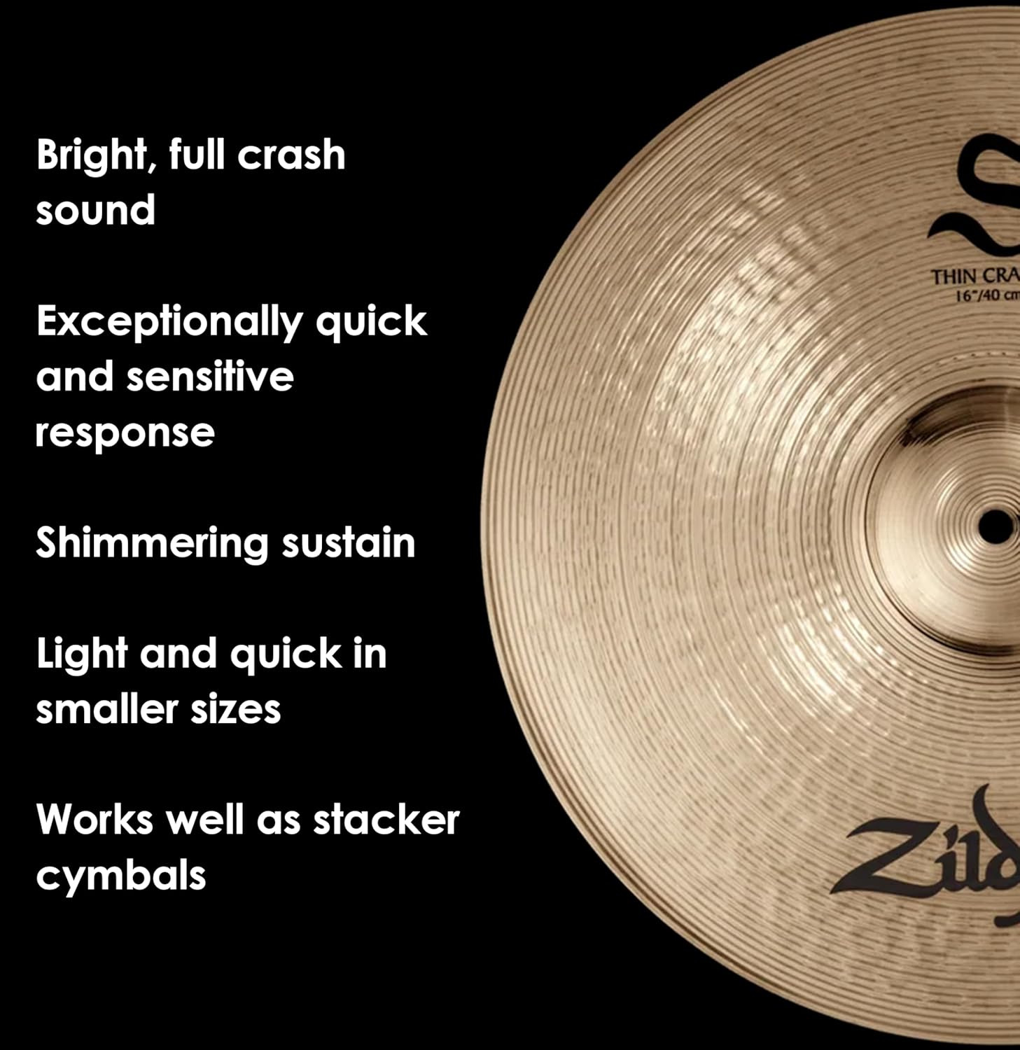 With an exceptionally quick and sensitive response from the lightest touch, S Family thin crashes feature a bright, full crash sound with a beautiful shimmery sustain. Smaller size thin crashes are light and quick, and also work well as stacker cymbals.
