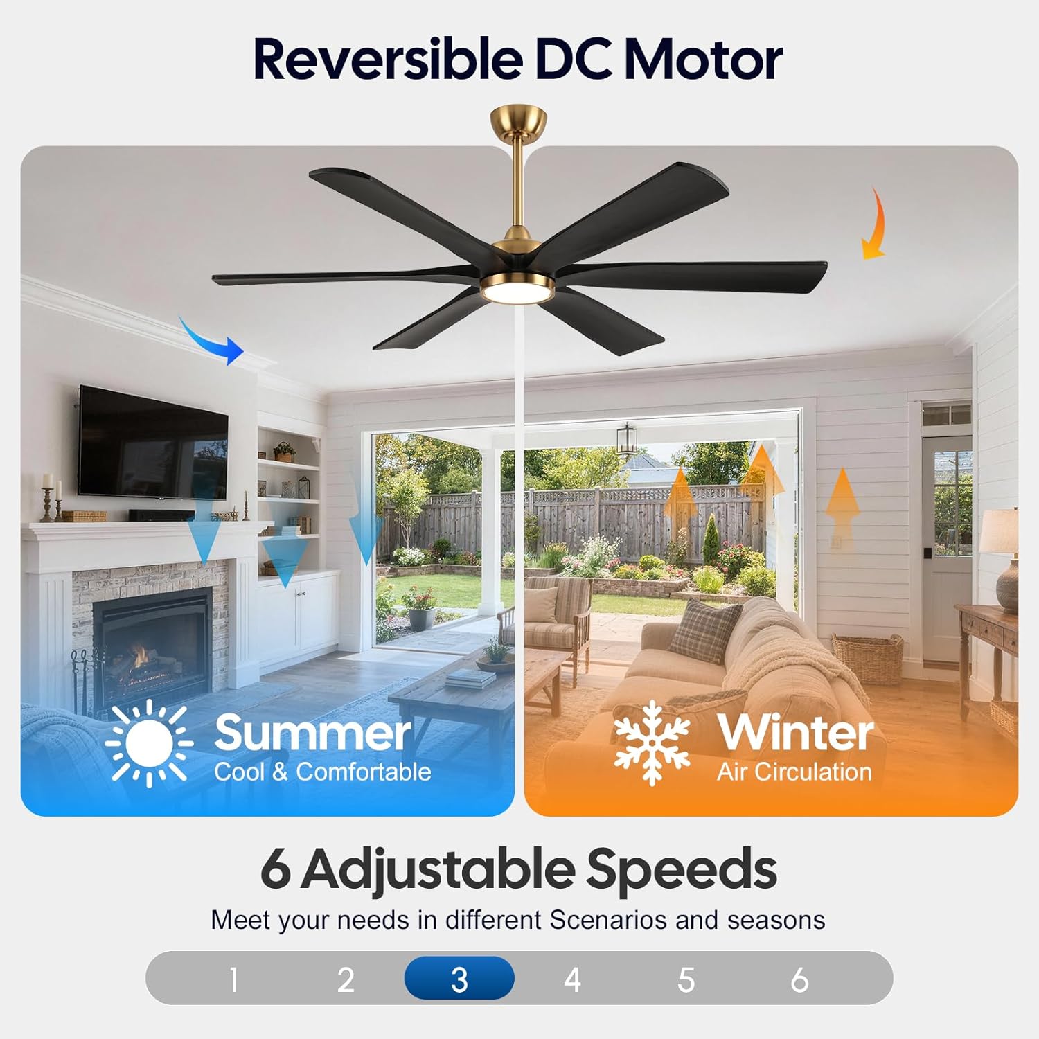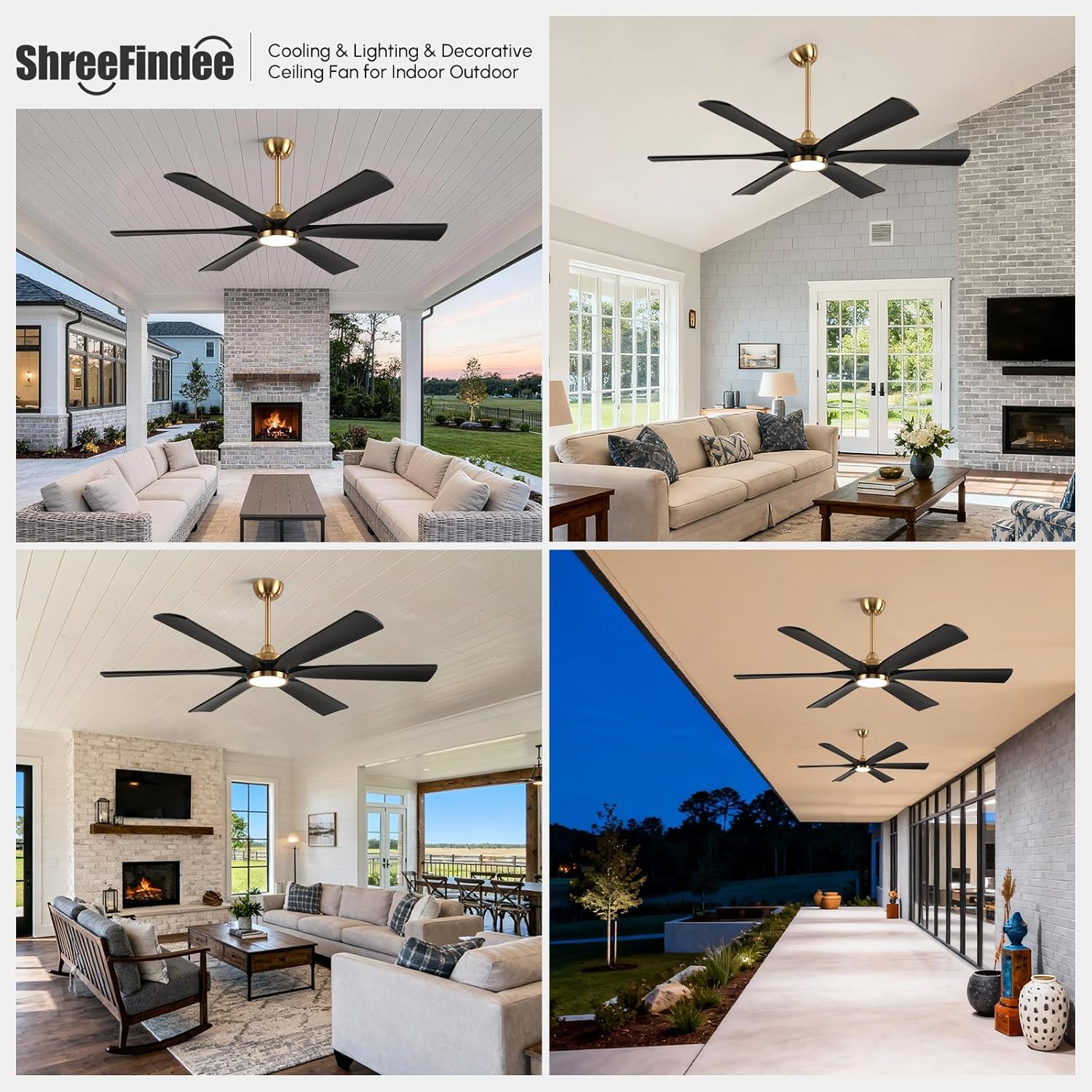 | Room Type | Indoor ceiling fan for Bedroom, living room, kitchen, Commercial, hotel, shop, library, home office, Outdoor ceiling fan for covered patios, porch, gazebo, garage, , dining room |