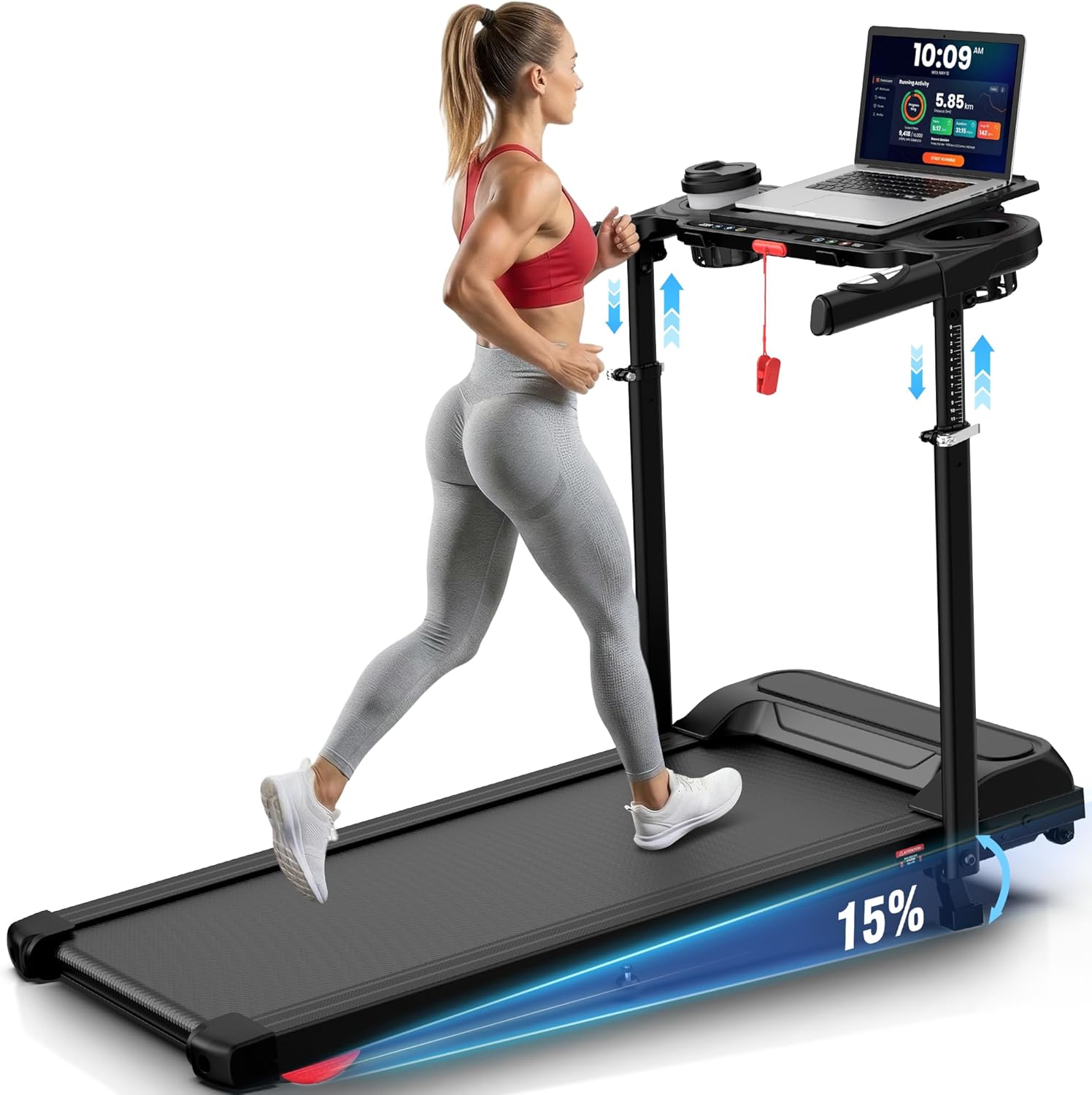 ANCHEER Foldable Treadmill with Removable Desk - Your All-in-One Home Fitness Solution✔ Versatile Height Adjustment - Suitable for all ages, from gentle rehab exercises to endurance training✔ Spacious Removable Desk - Fits laptops & snacks with convenient cup holder✔ Enhanced Safety Features - Heart rate monitor, sturdy armrests, and emergency safety key✔ 3-Level Manual Incline - Burns 800-1000 more calories/hour than walking pad (up to 8° adjustment)✔ Hydraulic Folding System - Folds in under 2 seconds with easy-rolling wheels for storageUpgrade your home fitness with the ANCHEER 2025 Treadmill - the smarter alternative to expensive gym memberships and unstable walking mats. Our engineering team designed this multi-generational treadmill with:Office-Friendly Workstation: Work or watch videos while exercising on the extra-large desk surfaceFamily-Safe Operation: Non-slip running belt with balance-support armrests for secure workoutsSpace-Saving Innovation: Patented hydraulic folding mechanism requires minimal storage spacePre-Assembled Convenience: Starts working immediately after simple screw installationWhy Customers Love It:"Finally a treadmill that lets me answer emails while burning calories!" - Sarah K. ★★★★★"My physical therapist approved this for my knee rehab - the adjustable height is perfect!" - James T. ★★★★★🚀 Bring the Gym Home—Click [Add to Cart] Now!