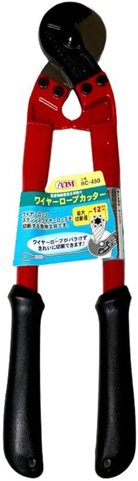 Double-edged construction prevents wire from coming loose during cutting, improving work efficiency. [Use] Cutting wire rope, stainless steel wire rope. Features: The blade is forged for excellent durability and strength. A grip that fits your hand for increased grip during work. [Precautions] Cannot be cut on hard objects such as guard cables. Please do not use for anything other than the intended purpose. Please make sure there are no people or objects around the area before using.